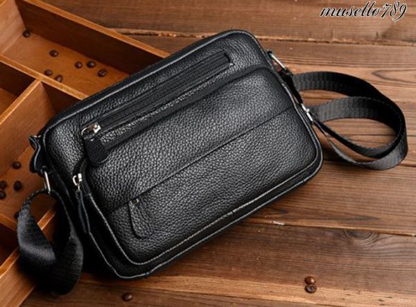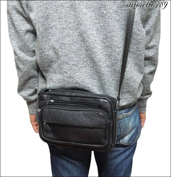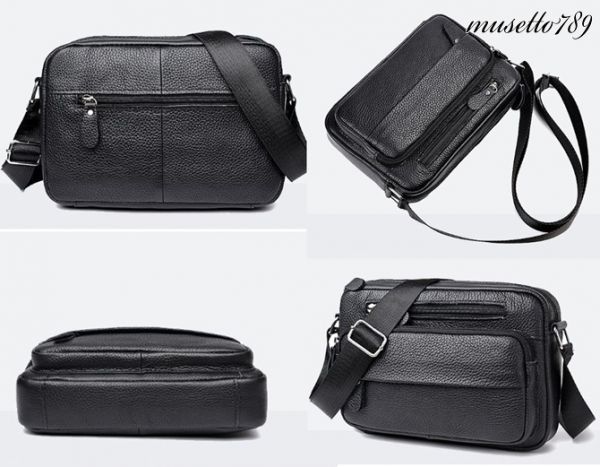本牛革!◆オールバッファローレザーショルダーバッグ 黒◆柔らかな本革 サコッシュ 冬新作 鞄 ブラック 実用性抜群 ボディ男女兼用 771y