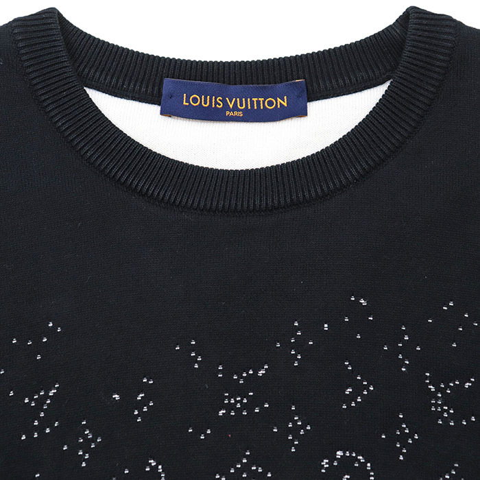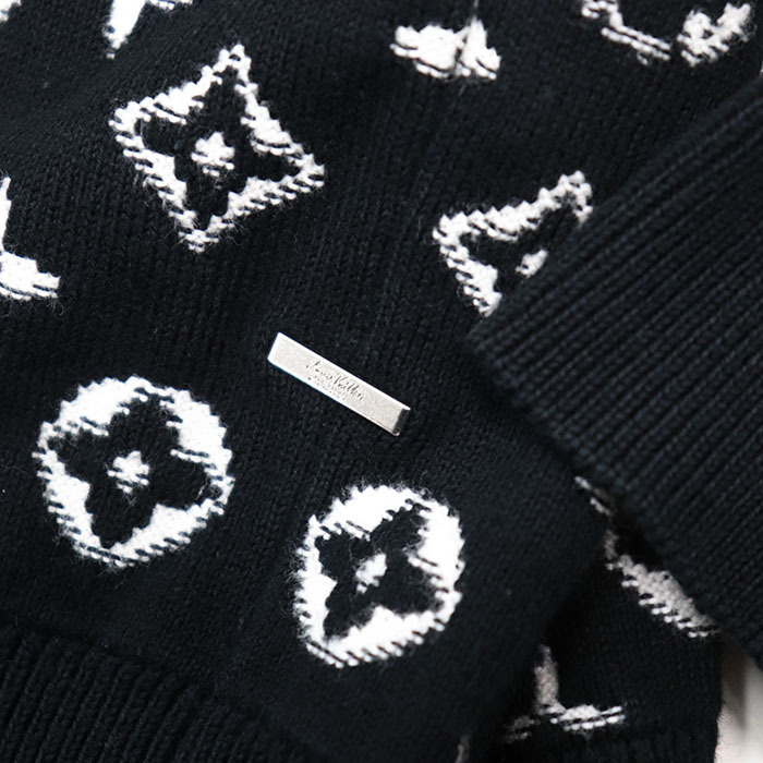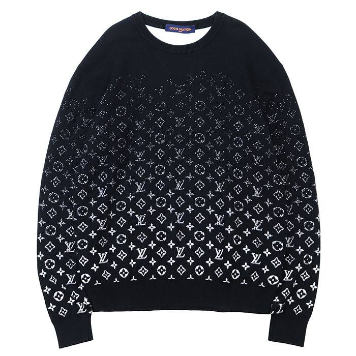 【極美品】LOUIS VUITTON ルイ ヴィトン ニット コットン モノグラム グラディエント 22SS LVロゴ プレートメンズ L 濃紺 白 伊製