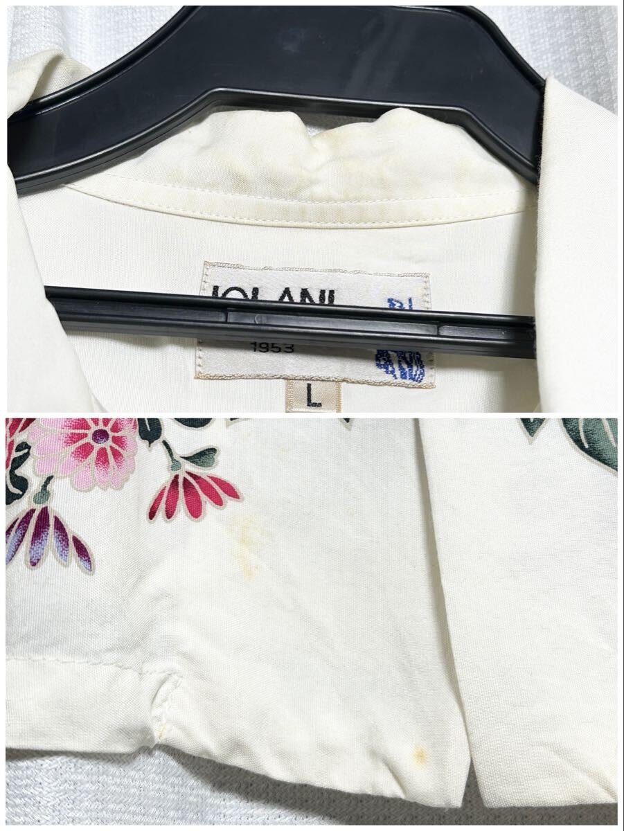 □/IOLANI/イオラニ/Lサイズ/ハンガー付き/アロハシャツ/シャツ/ホワイト/白/ぼたん柄/半袖/ショートスリーブ/