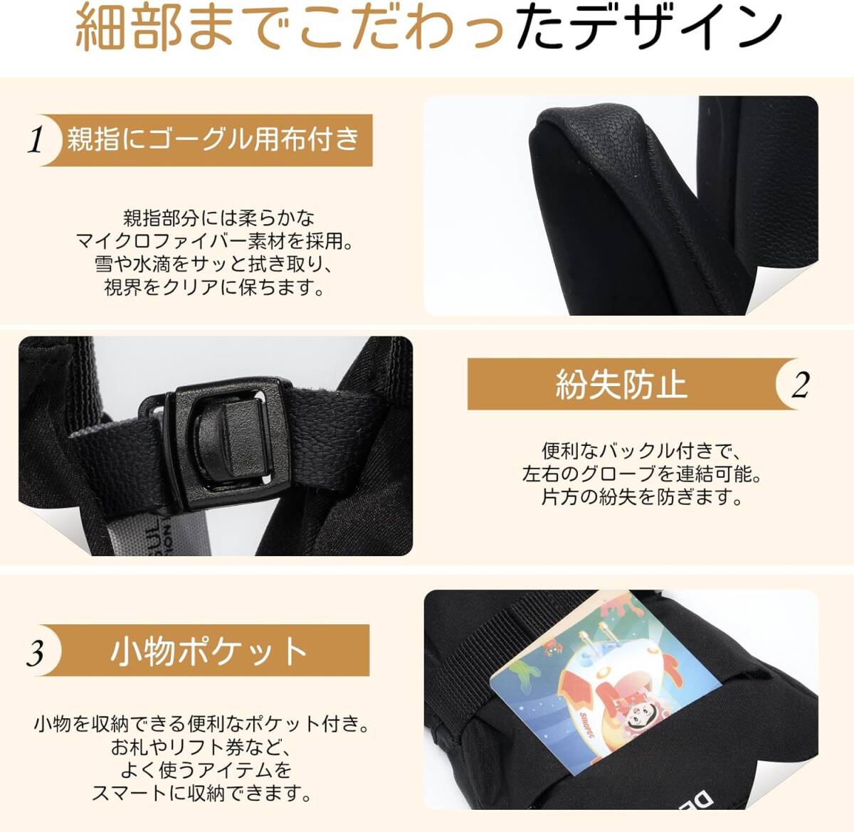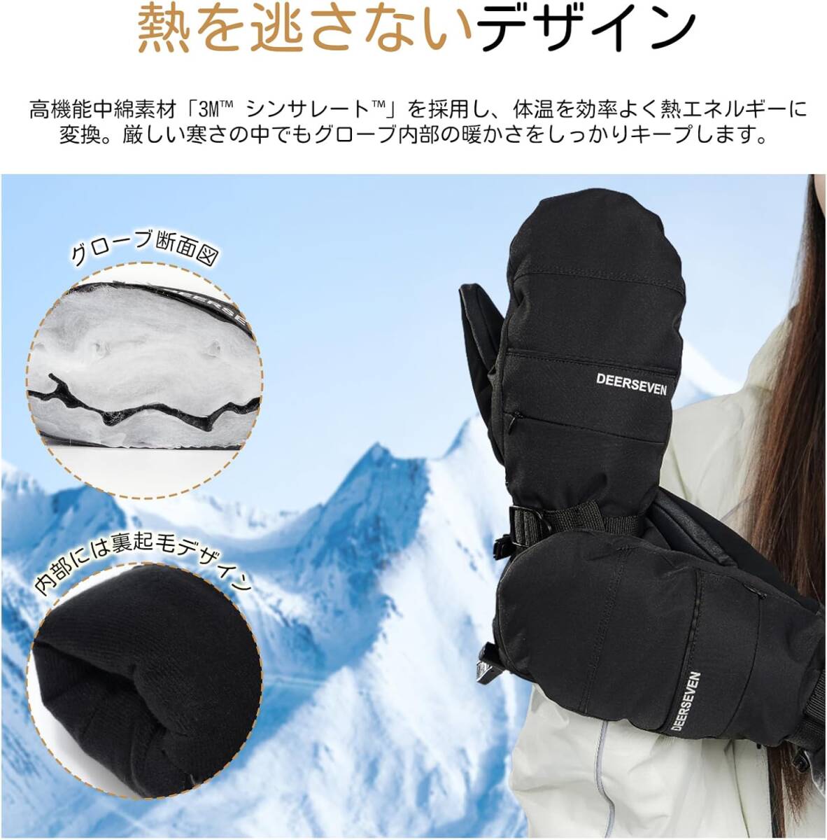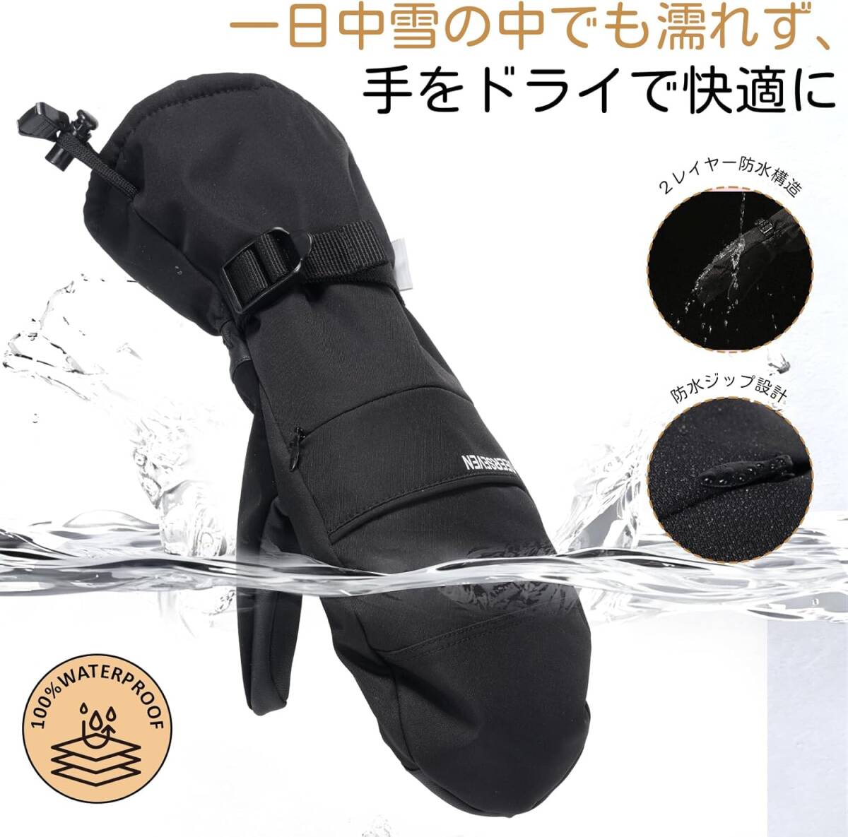 Lサイズ スノーボード スキーグローブ ミトン 3Mシンサレート メンズ レディース リーシュコード付き ストラップ付き 裏起毛 ユニセックス
