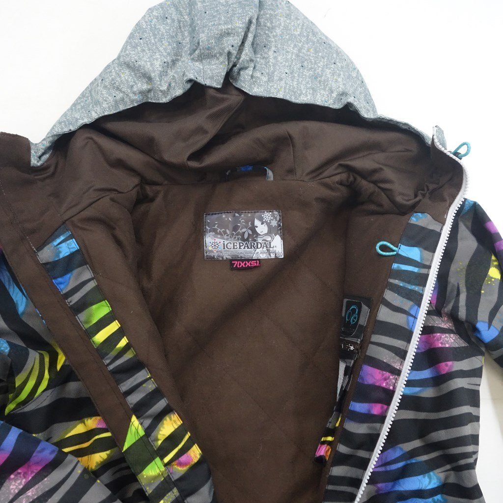 中古 2015年頃 iCEPARDAL ストライプ柄 レディースXXSサイズ スノーボードジャケットウェア アイスパーダル 40011-2