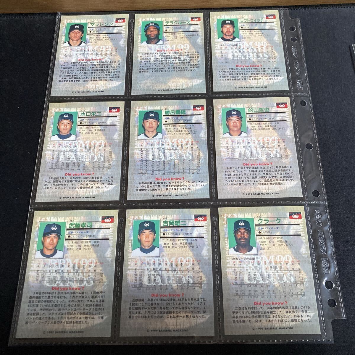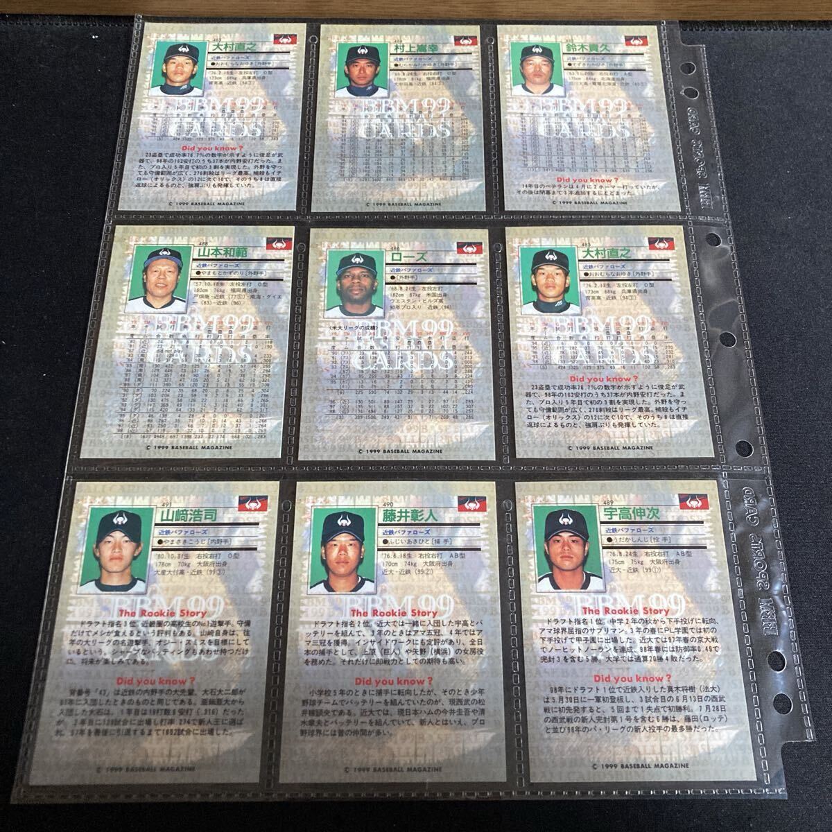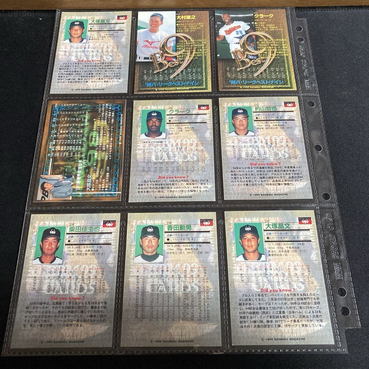 BBM 1999 近鉄バファローズ レギュラー ルーキー ゴールドサインカード BEST9 42枚セット 大塚晶則 クラーク 的山哲也