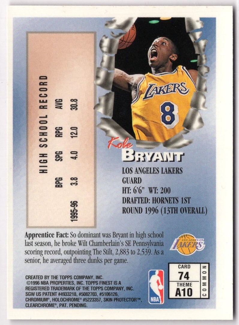 【コービーブライアント】NBA96-97 Topps Finest RC ##74 KobeBryant/LosAngelesLakers Rookieルーキー