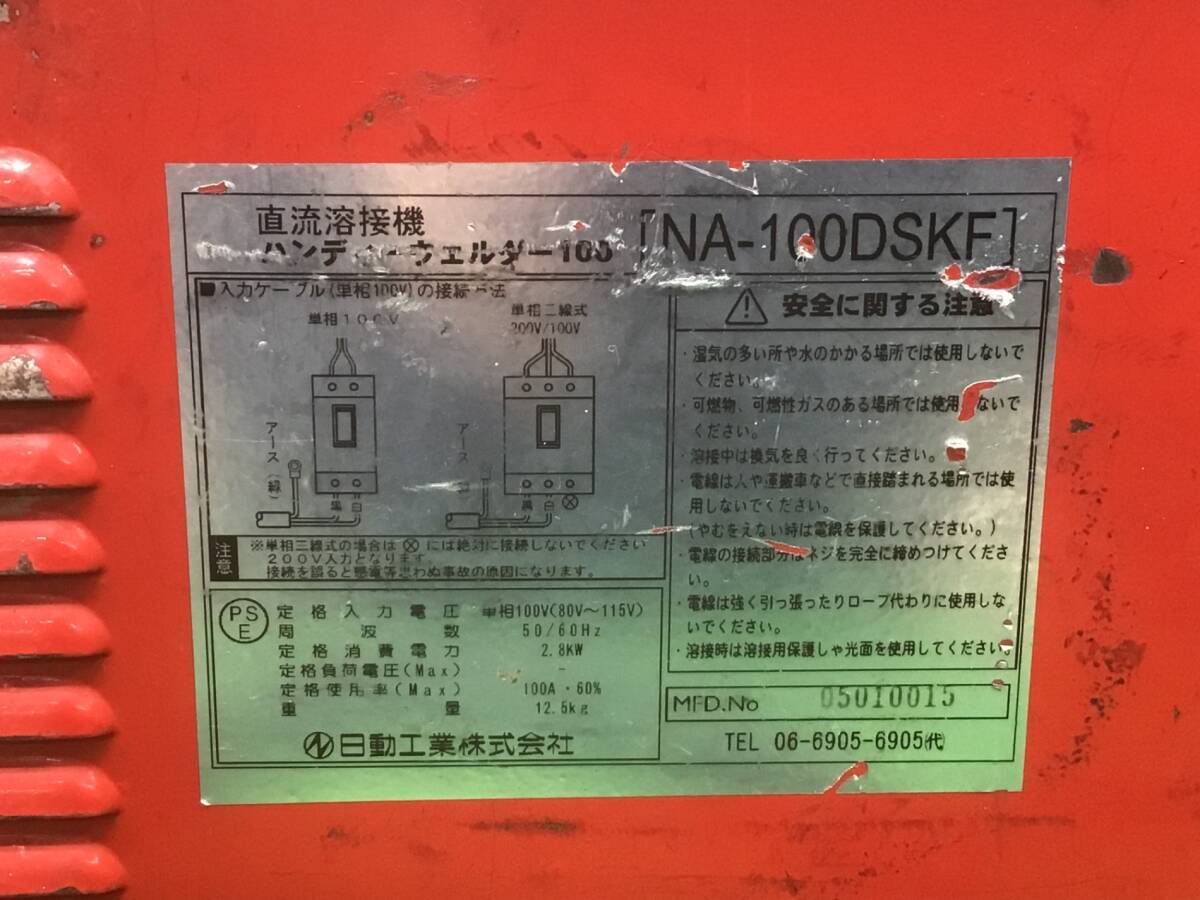 送料込!福山通運支店止【中古C現状品】●日動 ハンディーウェルダー100 インバーター直流溶接機NA-100DSKF●アクトツール富山店●窓