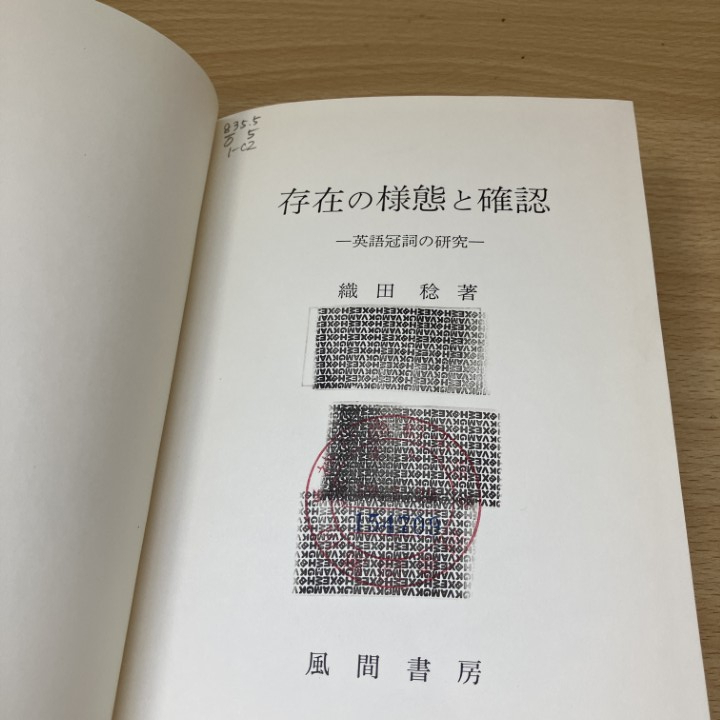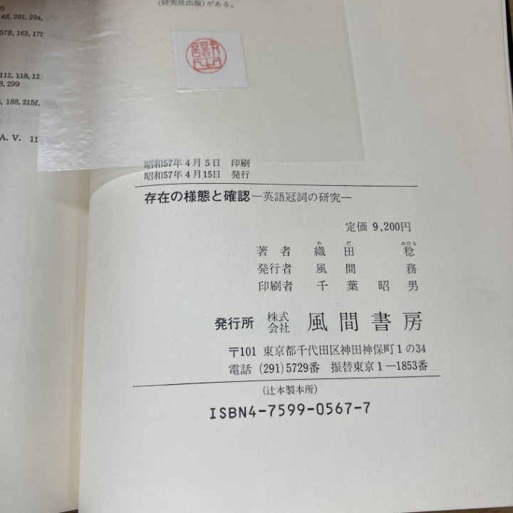 ●01)【1点限り!】【除籍本】存在の様態と確認/英語冠詞の研究/風間書房/昭和57年/言語学/A