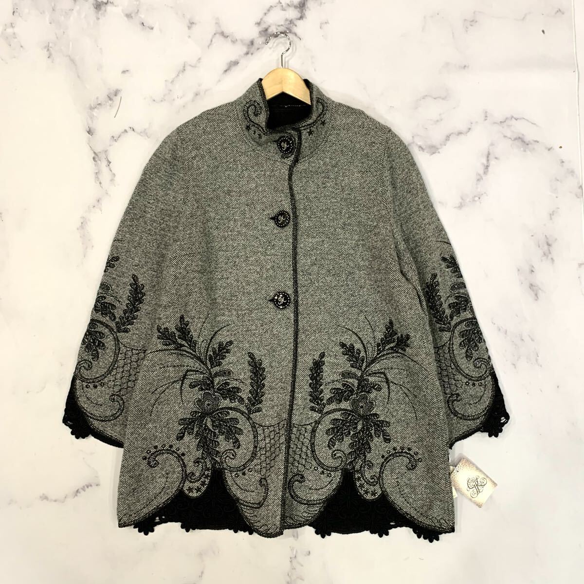 AQ▼ 未使用品 / 高級感溢れる '日本製' 伊太利屋 イタリヤ 刺繍 ストレッチ ラインストーン ボタン ジャケット コート 13 婦人服 アウター