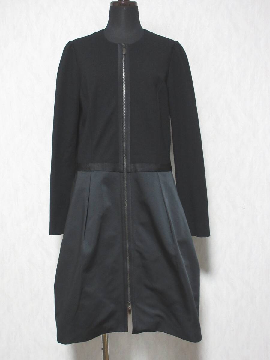 HIROKO KOSHINO ヒロココシノ ジップ 切替し ノーカラー ワンピース 38 ブラック yu246