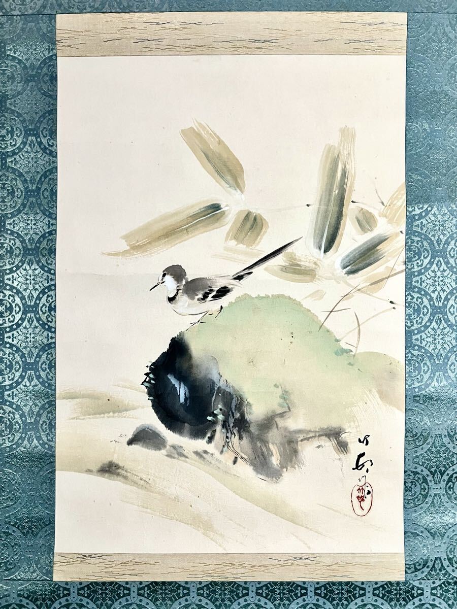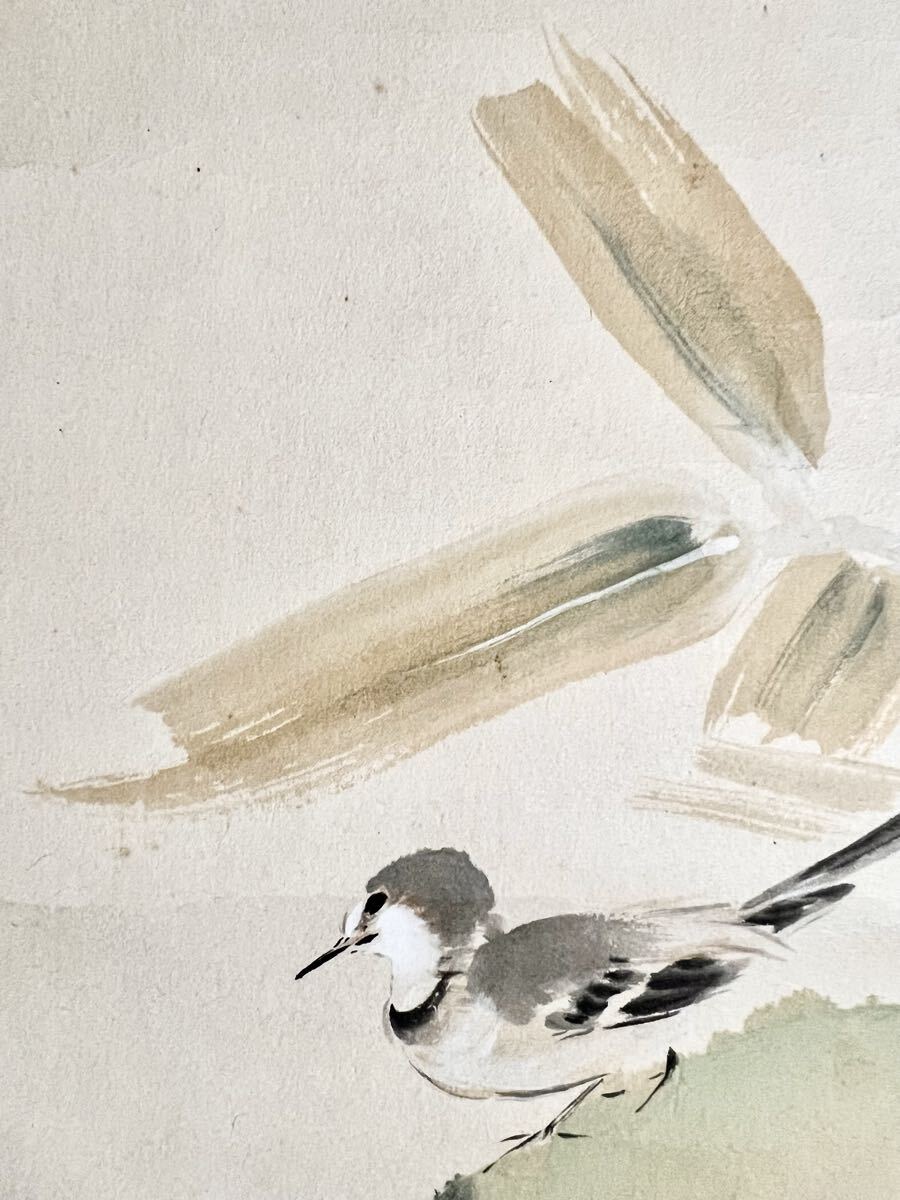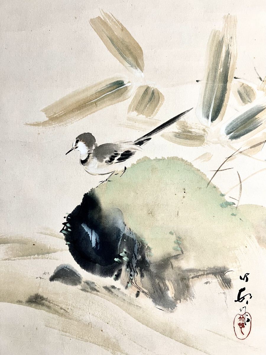 【真作】【S8】田近竹邨「熊笹にセキレイ」紙本 肉筆 合箱 花鳥図 鳥獣 絵画 掛軸 明治-大正時代の日本画家 大分の人 師: 田能村直入