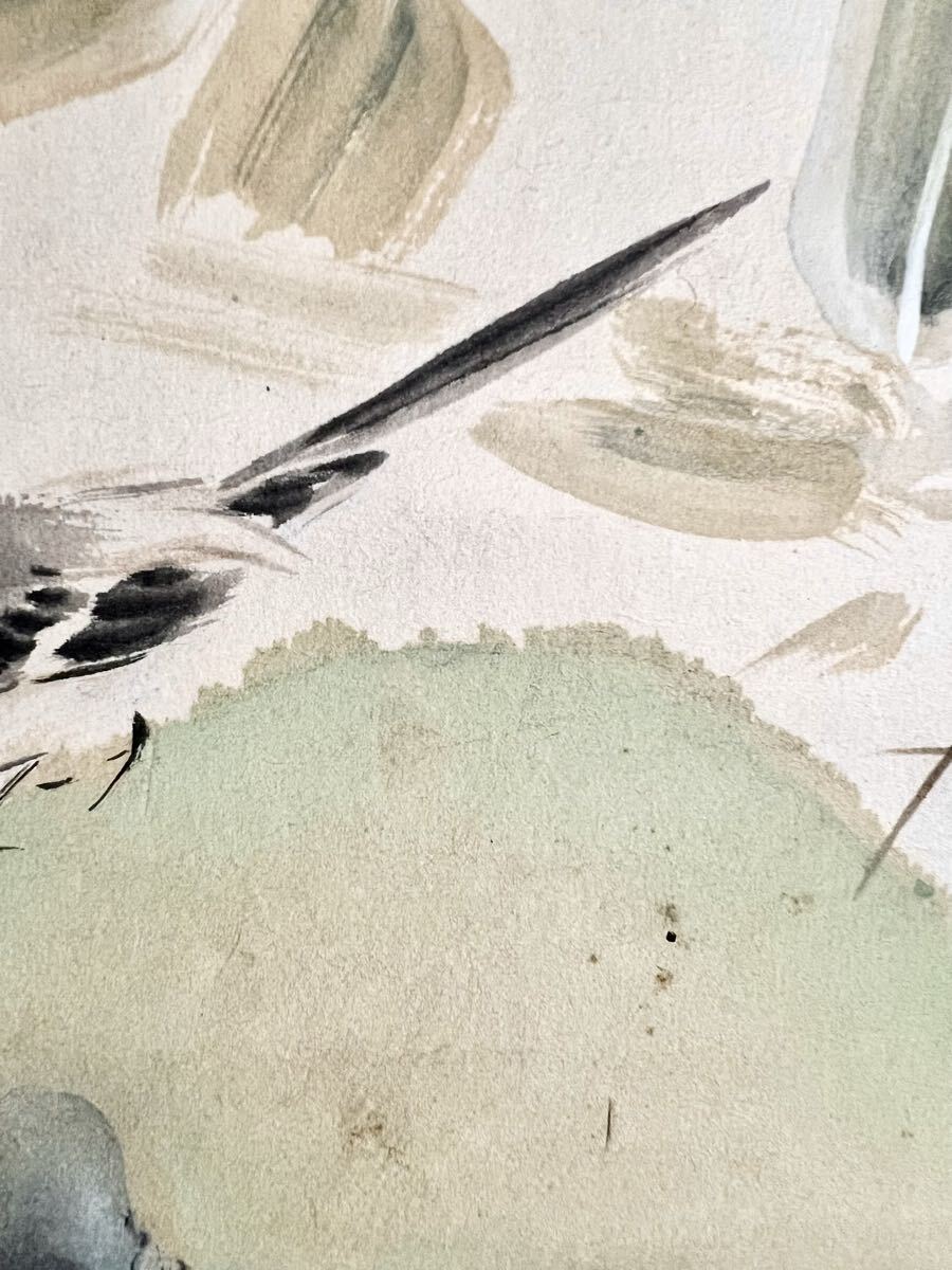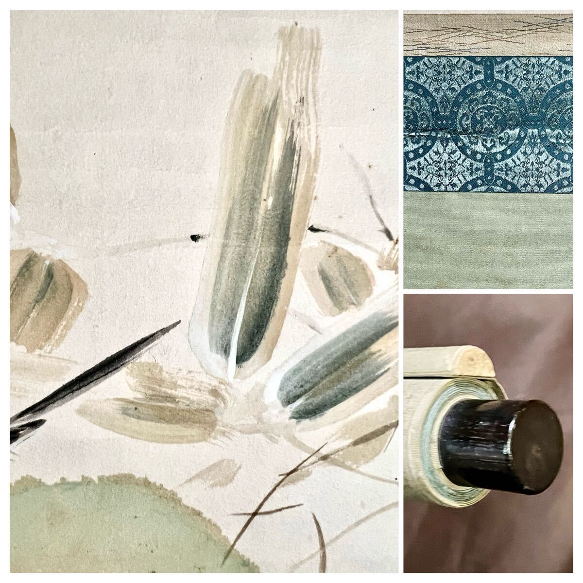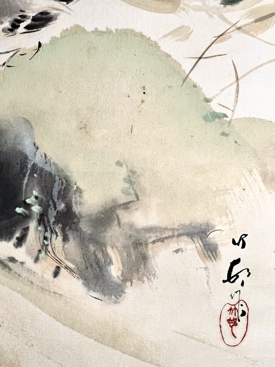 【真作】【S8】田近竹邨「熊笹にセキレイ」紙本 肉筆 合箱 花鳥図 鳥獣 絵画 掛軸 明治-大正時代の日本画家 大分の人 師: 田能村直入