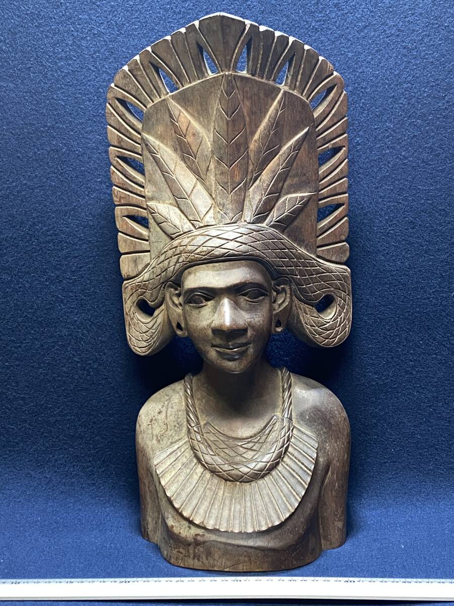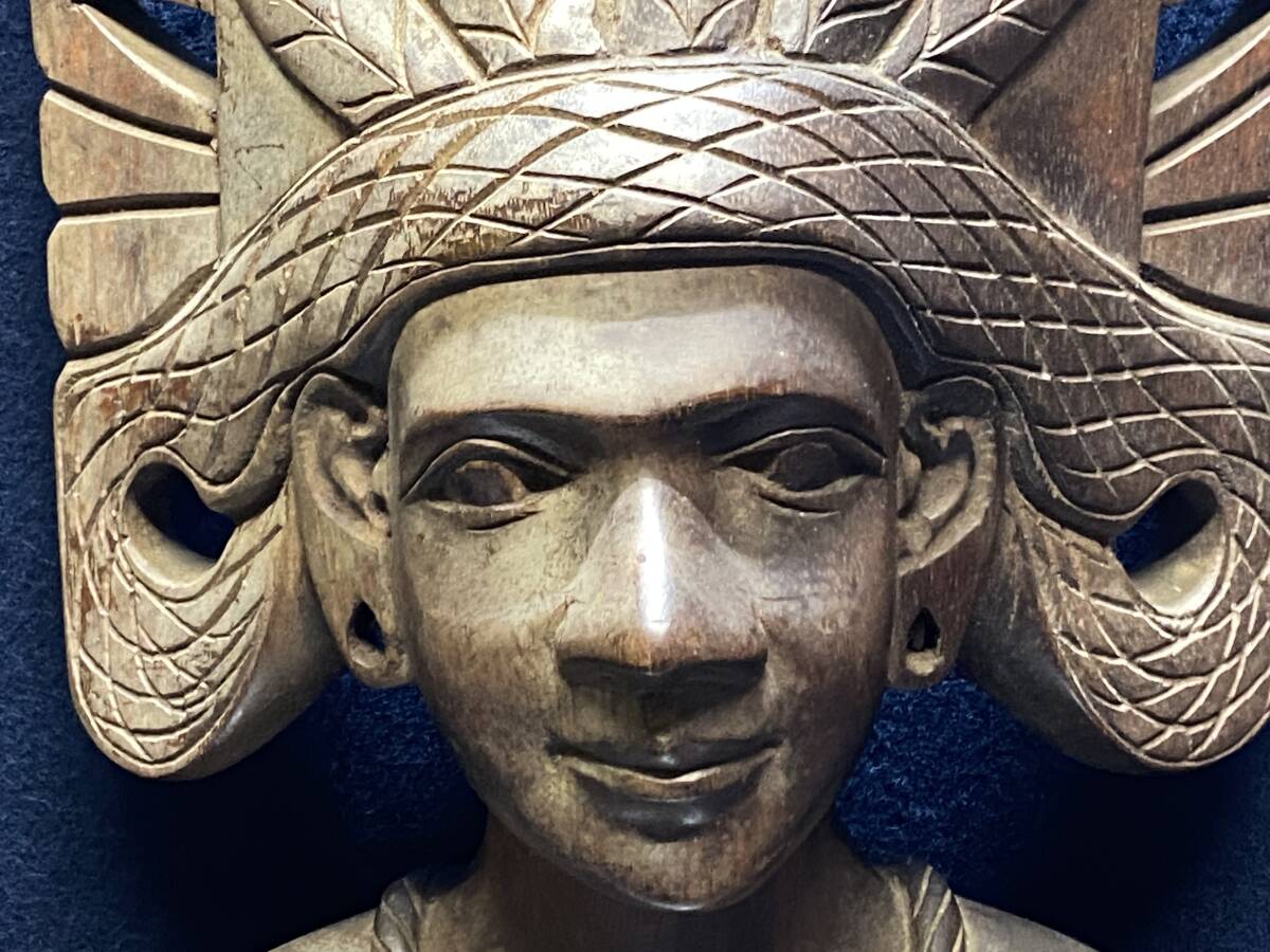 東南アジア BALI 木彫 彫刻 唐木 無垢 木造 民族衣装 男性?女神様 美人 女性 胸像 昭和レトロ 綺麗目 飾り置物 縁起物 飾り物 お土産 珍品