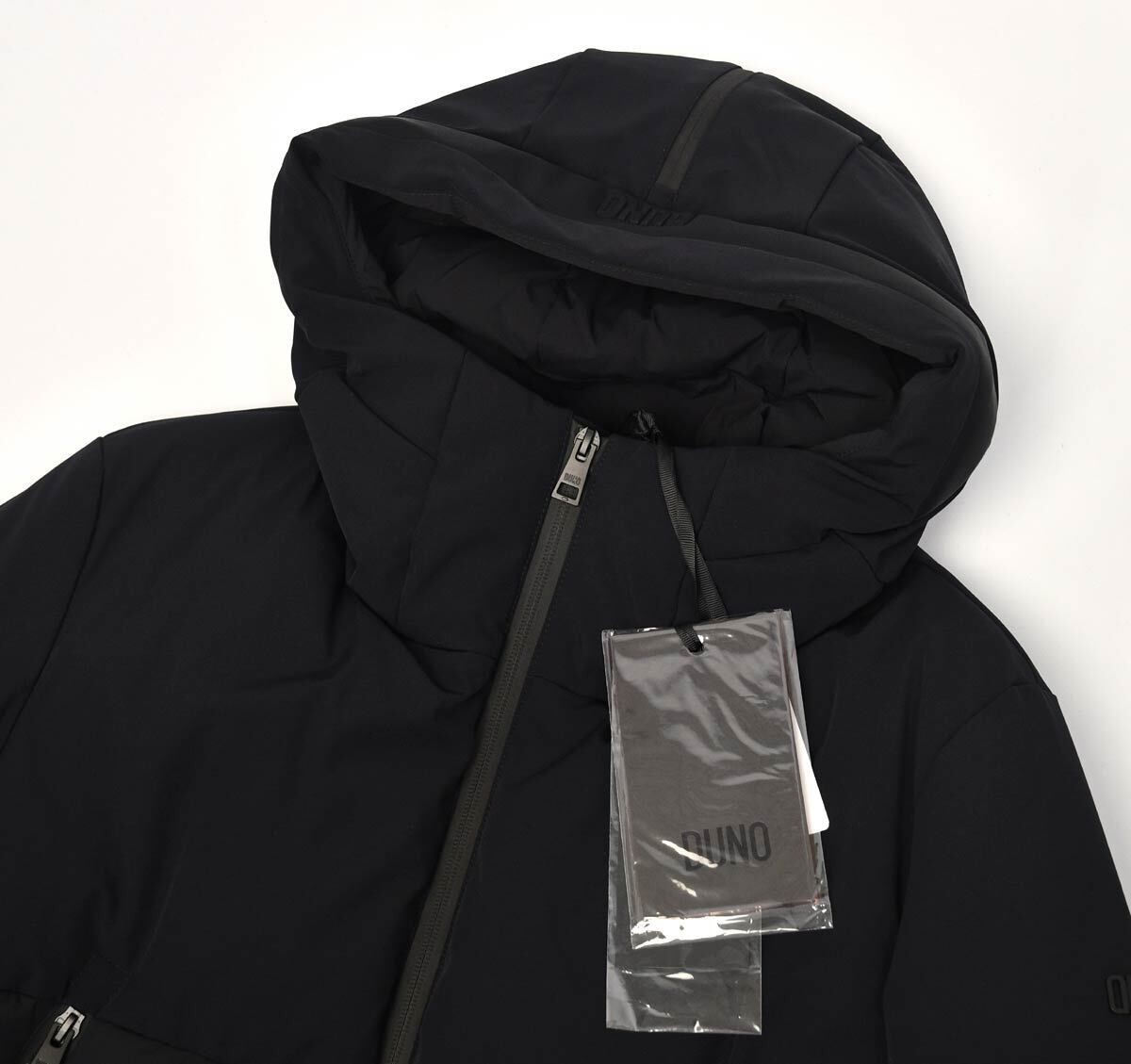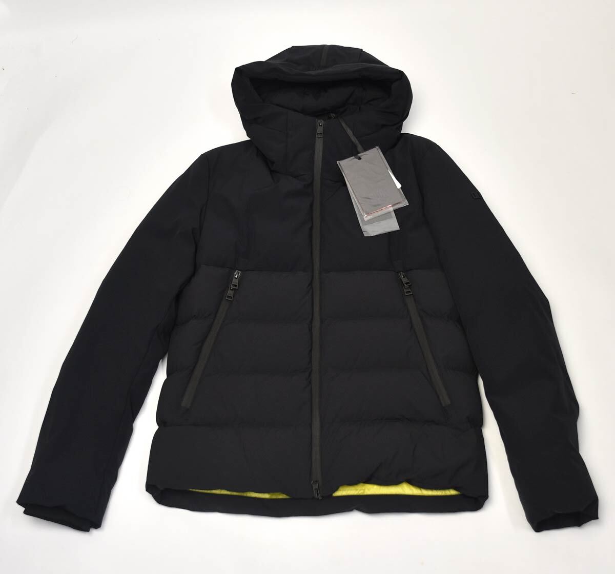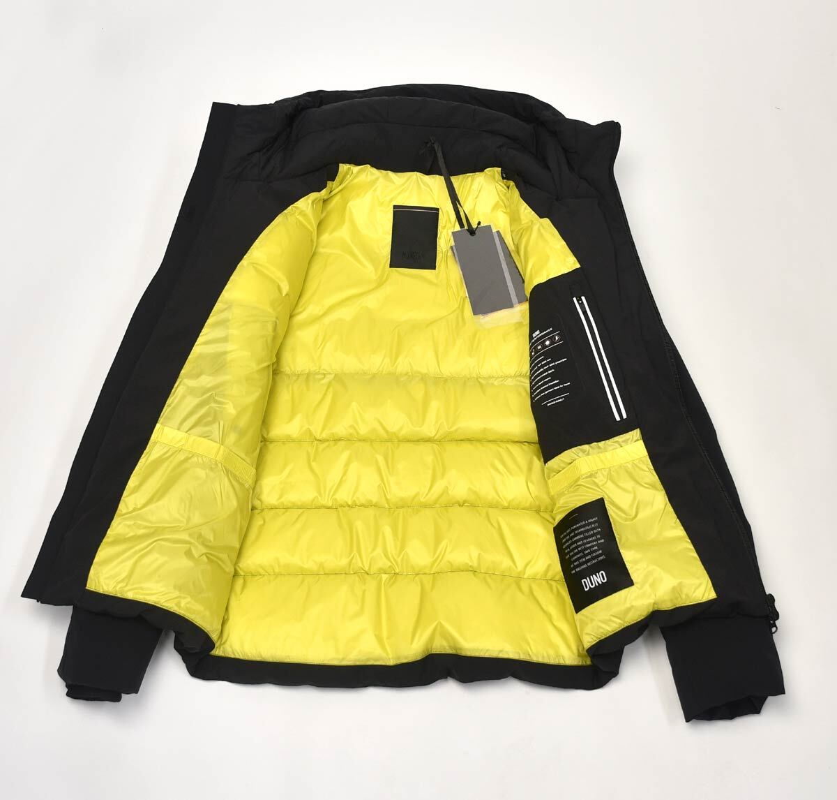 新品デュノDUNOフーデットダウンブルゾン48ブラック イエローTHUNDER
