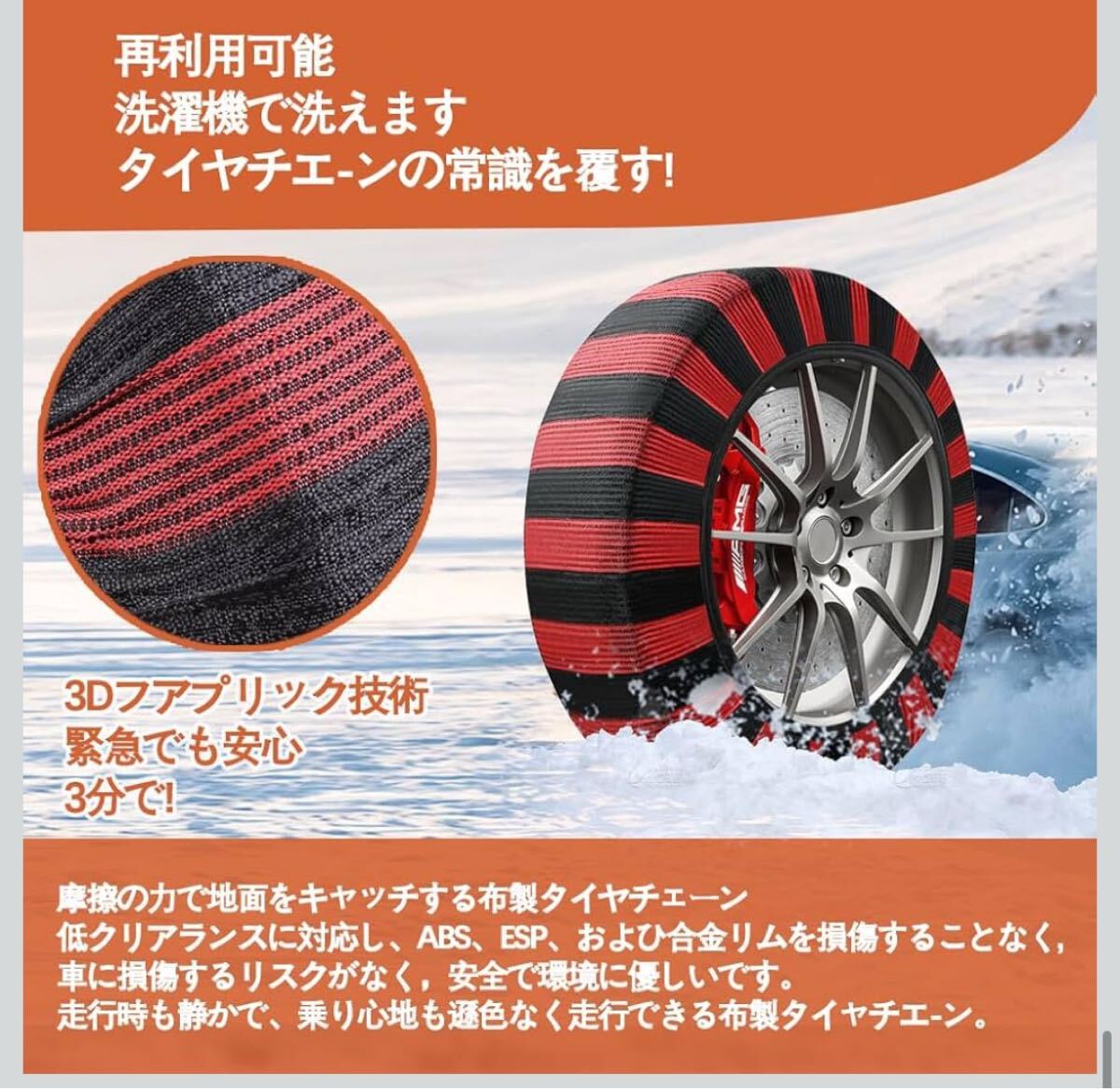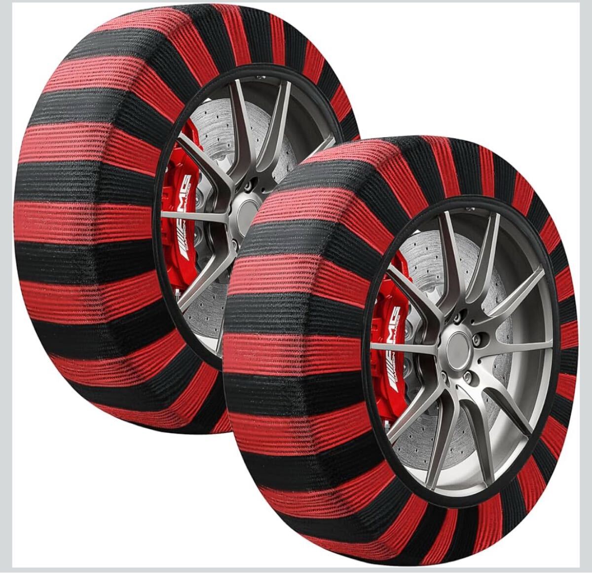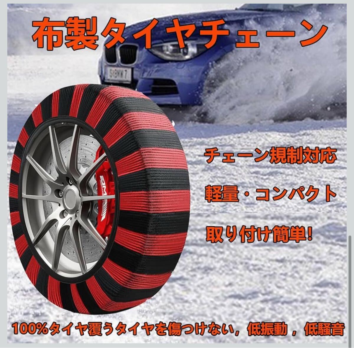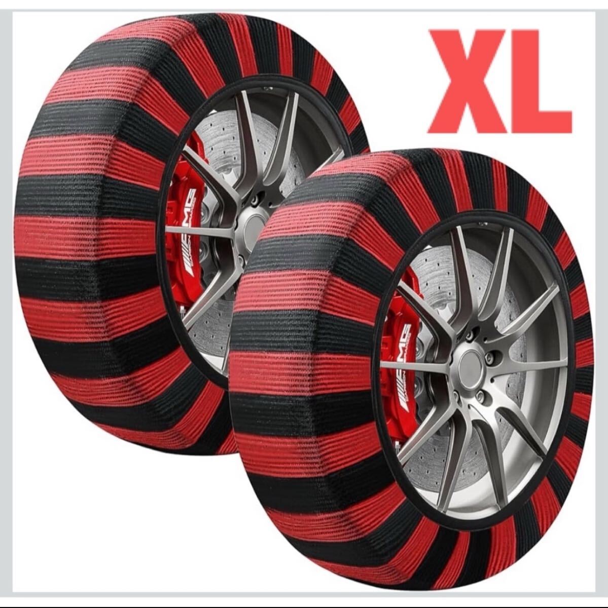 40 布製タイヤチェーン XL 2本分 簡単装着 ジャッキアップ不要 軽量 赤黒 タイヤチェーン スノーソックス 非金属 布 非金属タイヤチェーン