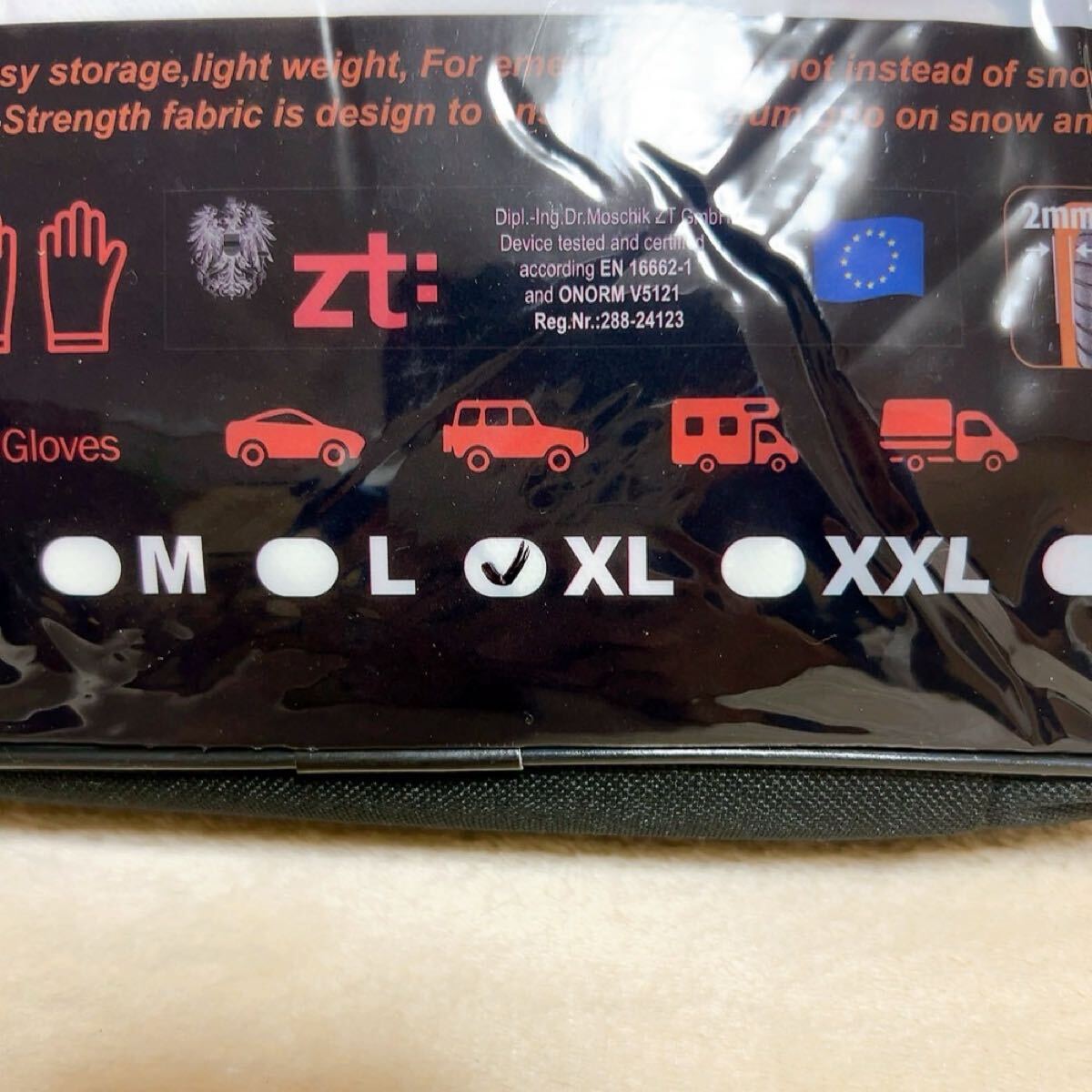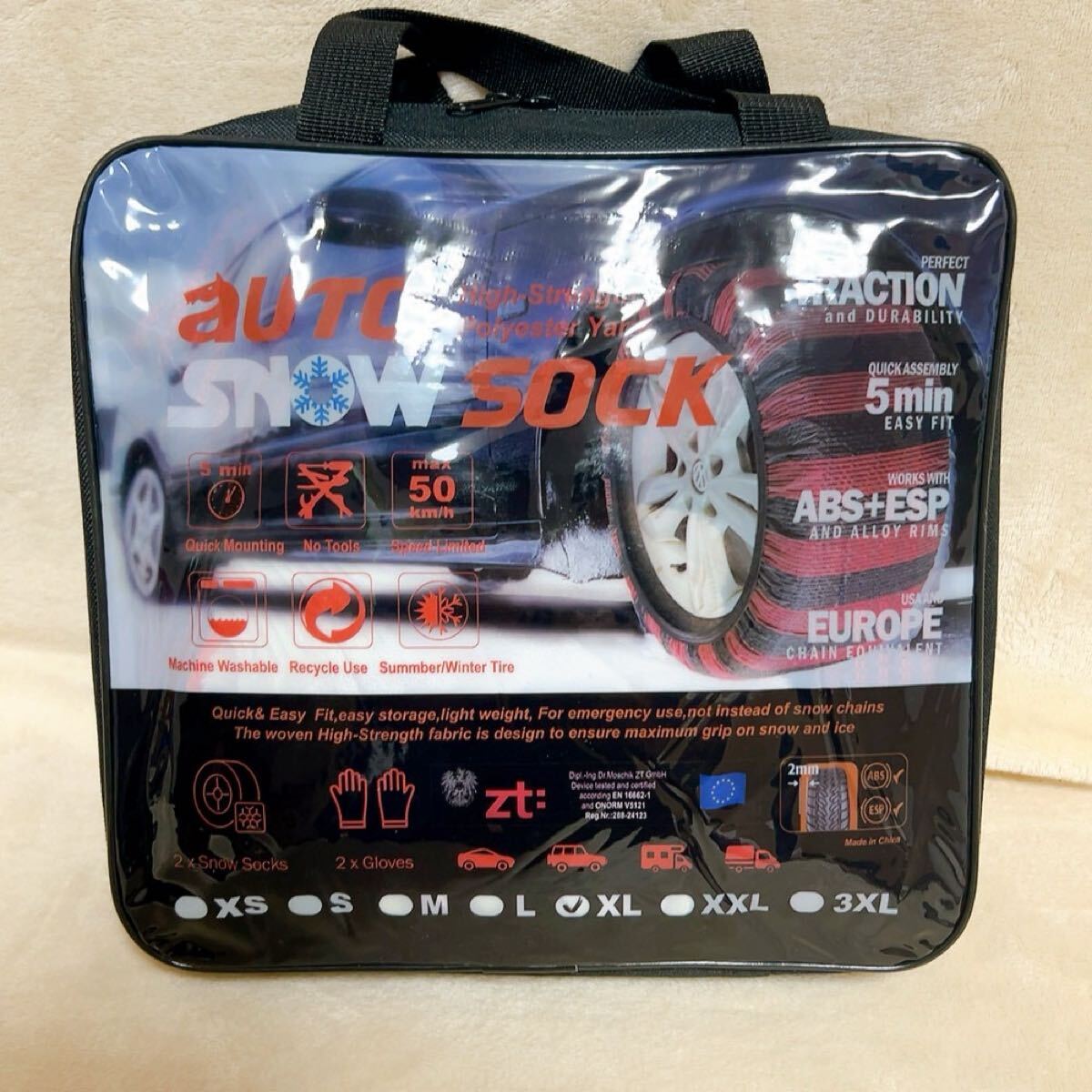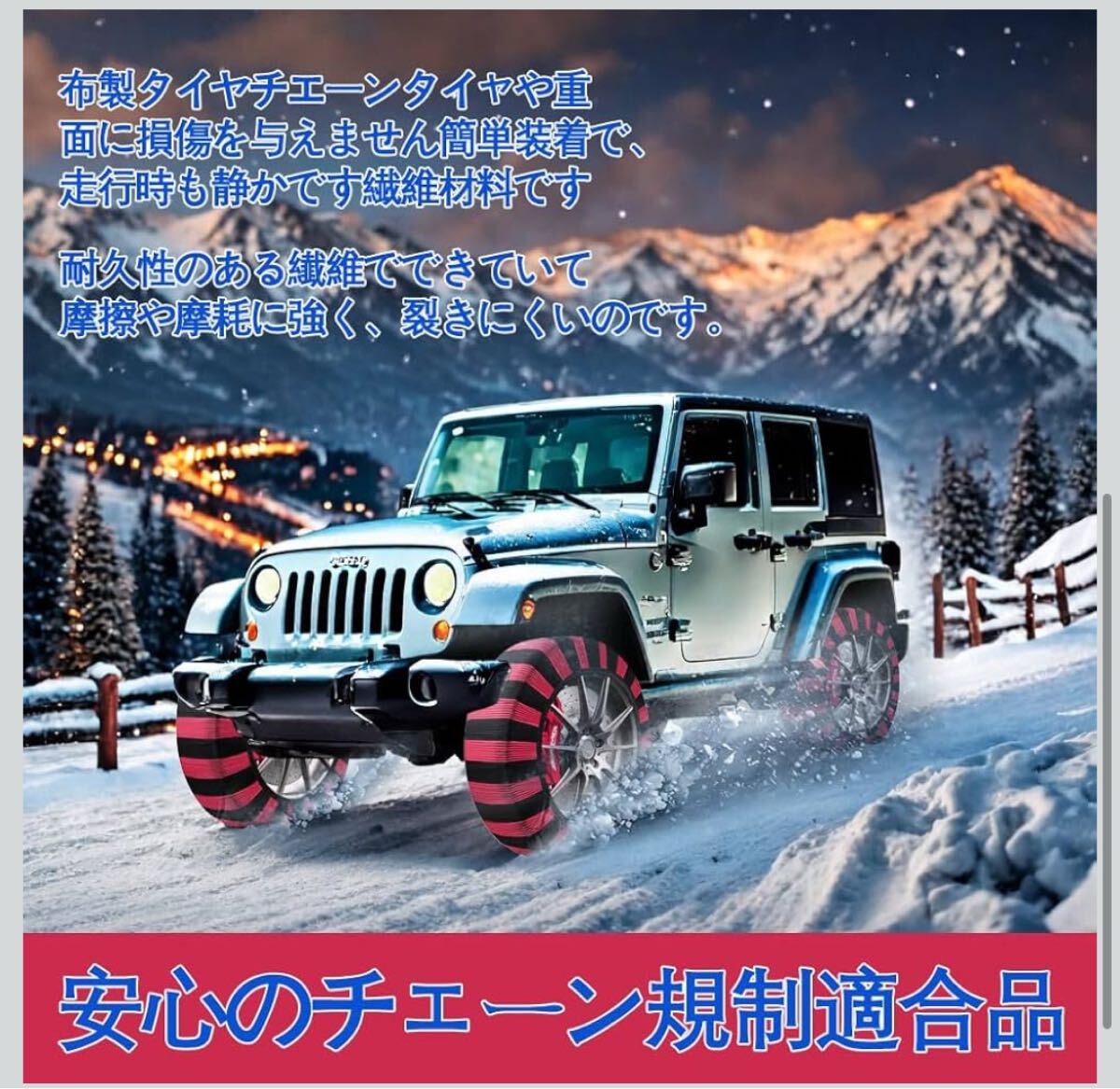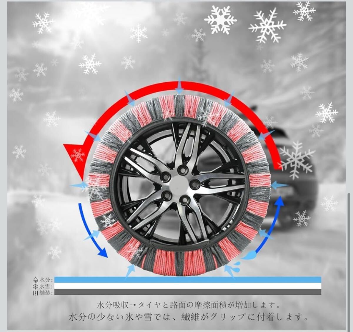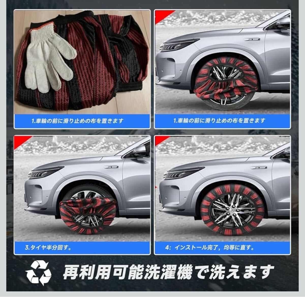 40 布製タイヤチェーン XL 2本分 簡単装着 ジャッキアップ不要 軽量 赤黒 タイヤチェーン スノーソックス 非金属 布 非金属タイヤチェーン