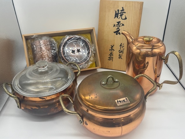 H565★ 純銅 銅製品まとめ 未使用保有り ポット 両手鍋 調理器具 暁雲 茶器揃 茶入 LAS HERRERIAS ラスエレリアス カッパー ホームウエア