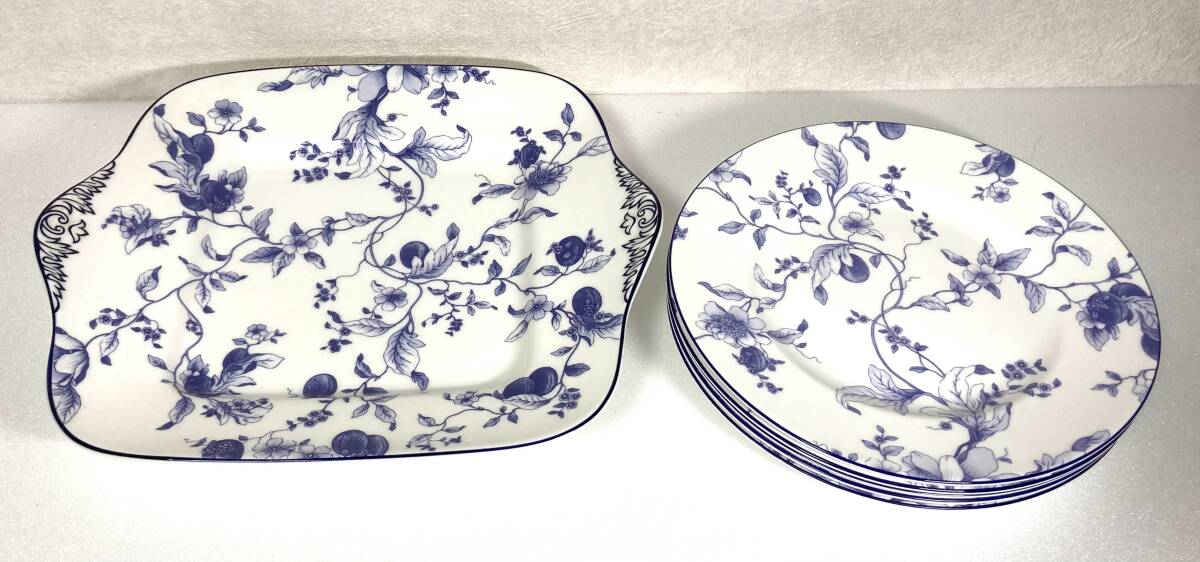 【27-T】★★Wedgwood Blue Plum スクエアハンドルケーキプレート約23cm プレート約20cm5枚 セット 箱なし★★現状品