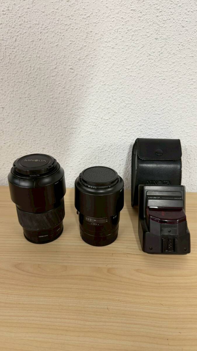 1円~【3点まとめ】MINOLTA ミノルタ AF ZOOM 70-210mm TAMRON タムロン SP AF レンズ2点 フラッシュ PROGRAM 3200i バッグ付き 現状保管品