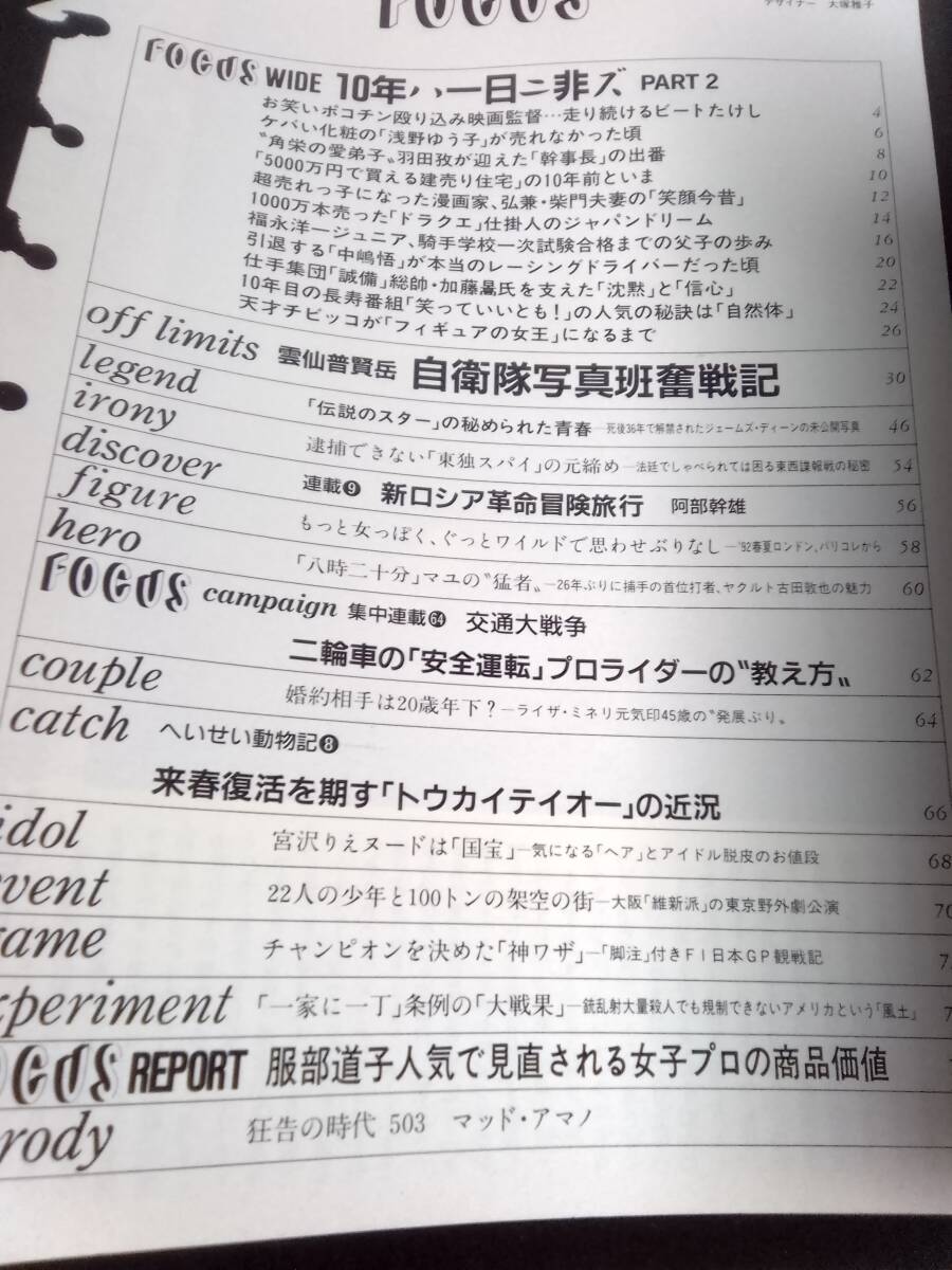 FOCUS フォーカス 1991年11月1日号 NO.43☆ビートたけし・水泳大会で全裸/浅野ゆう子・化粧/タモリ/ジェームスディーン/宮沢りえ・記者会見