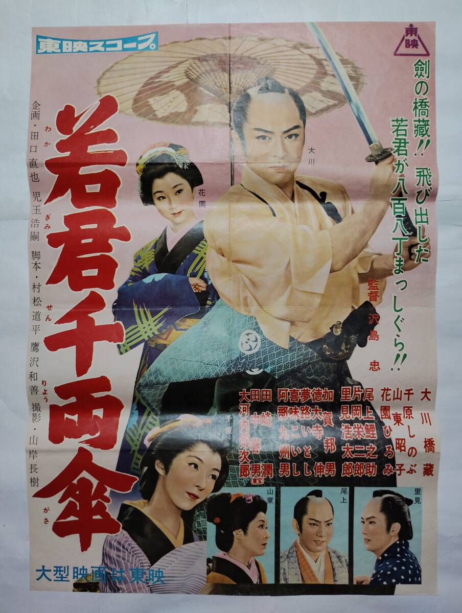 ◆映画ポスター 当時もの 会社版 若君千両傘 東映 沢島忠 大川橋藏 千原しのぶ 山東昭子 花園ひろみ 尾上鯉之助 片岡栄二郎 里見浩太郎