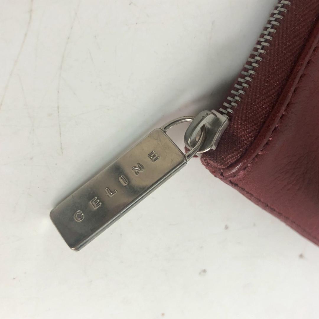 CELINE セリーヌ レザー ポーチ レッド レディース ブランド 赤 ボルドー コインモチーフ ステッチ ヴィンテージ ミニポーチ 小物入れ