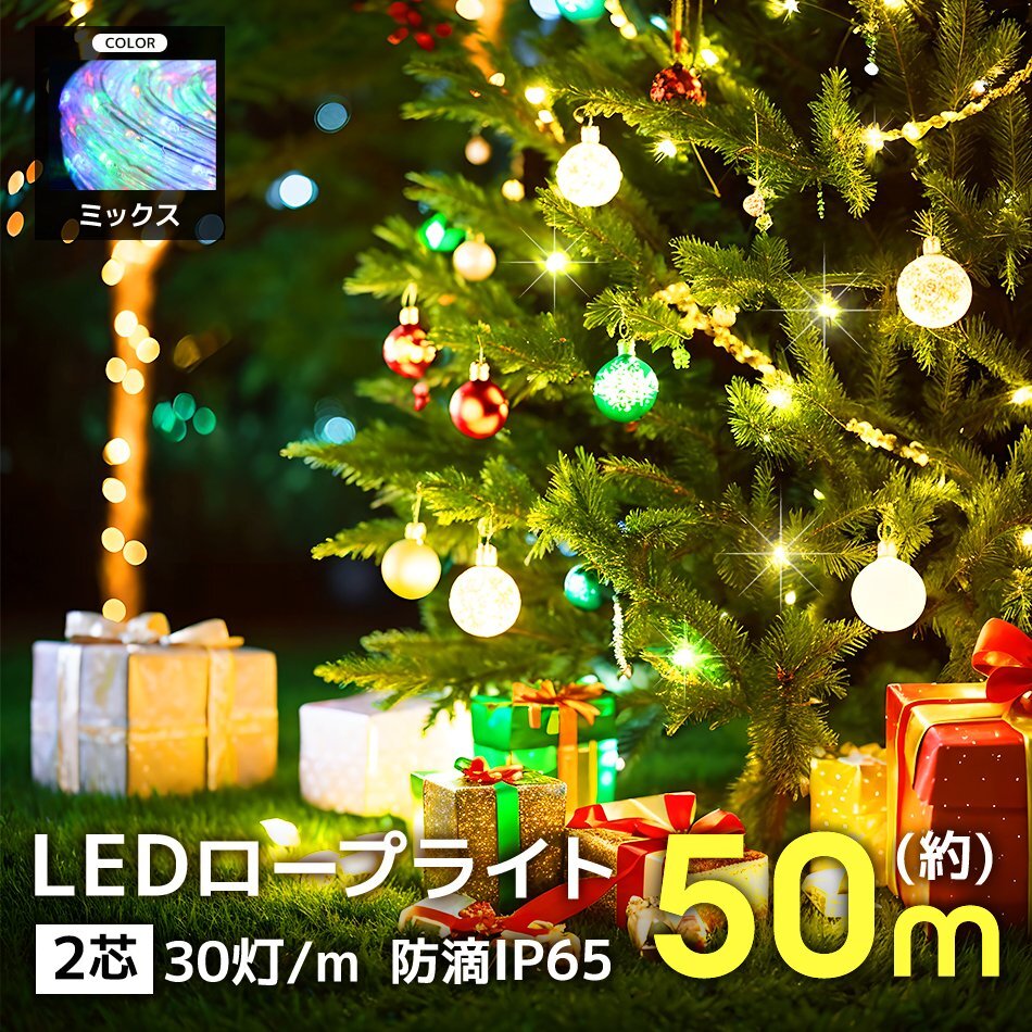 イルミネーション LED ライト 屋外 クリスマス 計1500球 50m カット可能 防水 チューブライト イルミネーションライト 電飾 ミックス