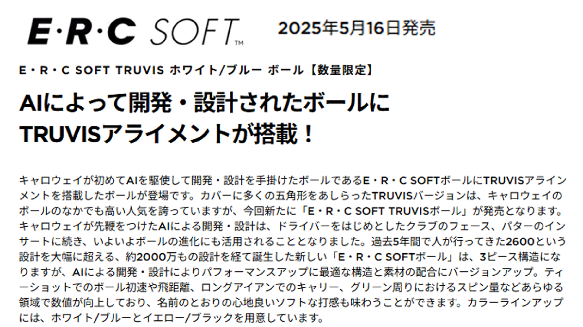 新品■2025.5■数量限定■キャロウェイ■ERC SOFT TRUVIS■ホワイト/ブルー■1ダース■AIによって開発・設計されたボール■正規品