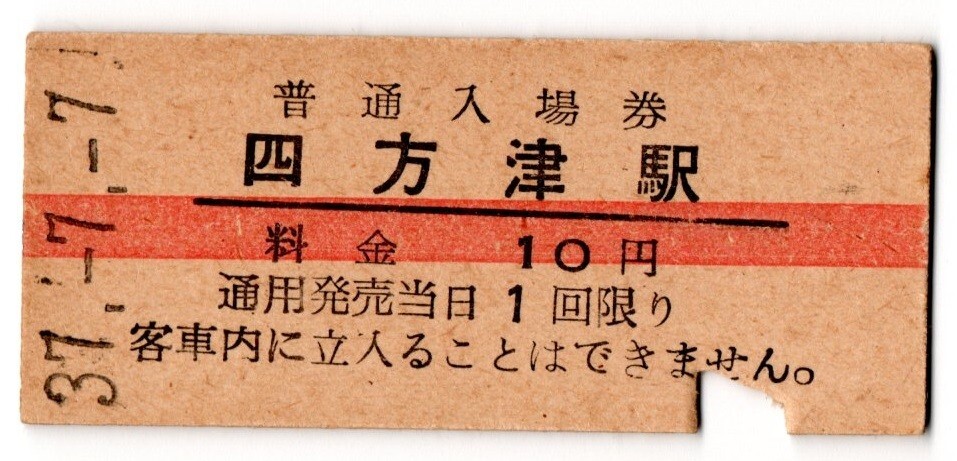 赤線入場券 四方津駅(中央本線)入場券 10円券 パンチ