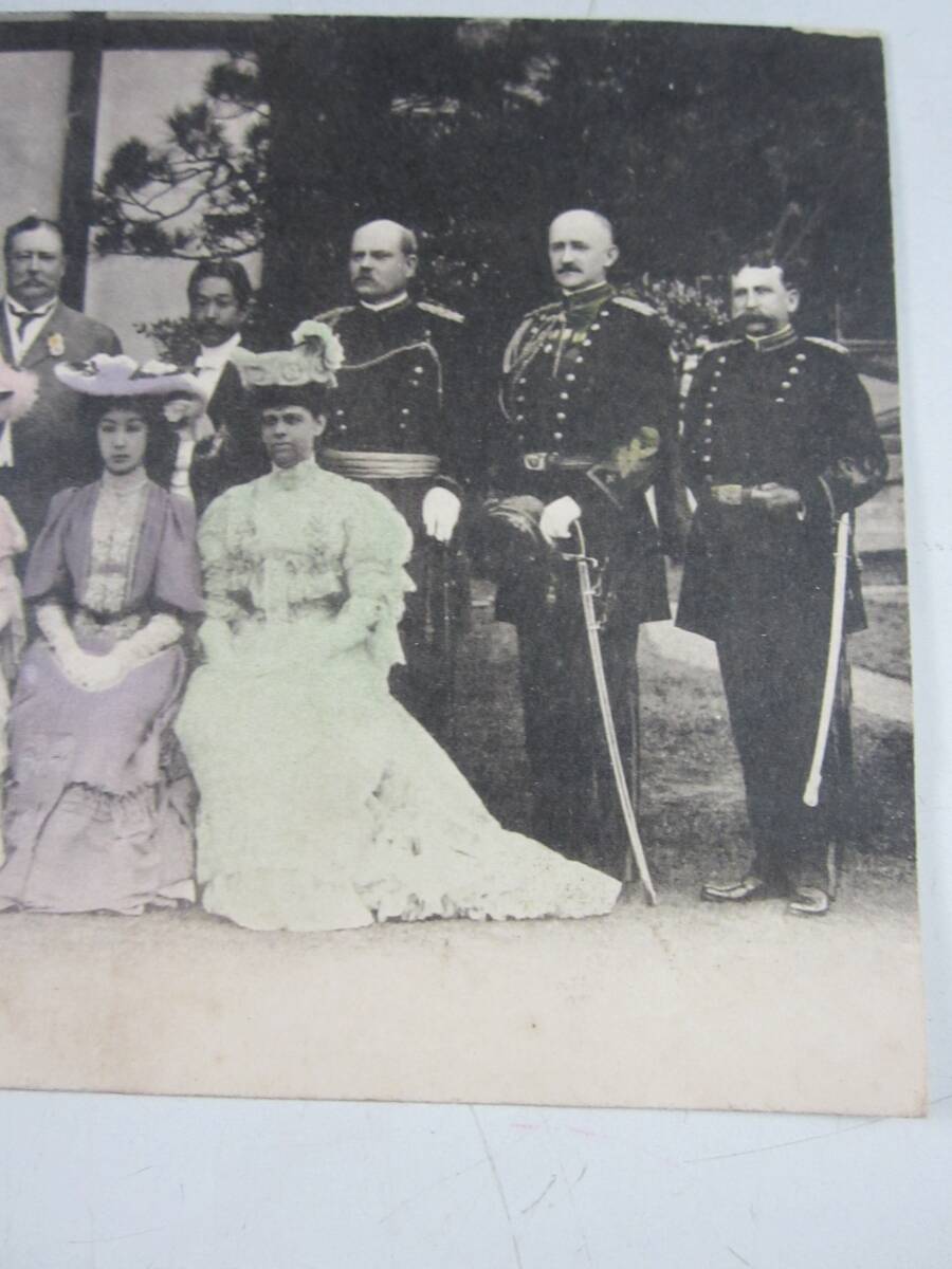《阡》明治期 手彩色 絵葉書 外国軍人と貴婦人 将校 東京銀座上方屋製 洋装集合写真 外交関係 貴重資料 未使用