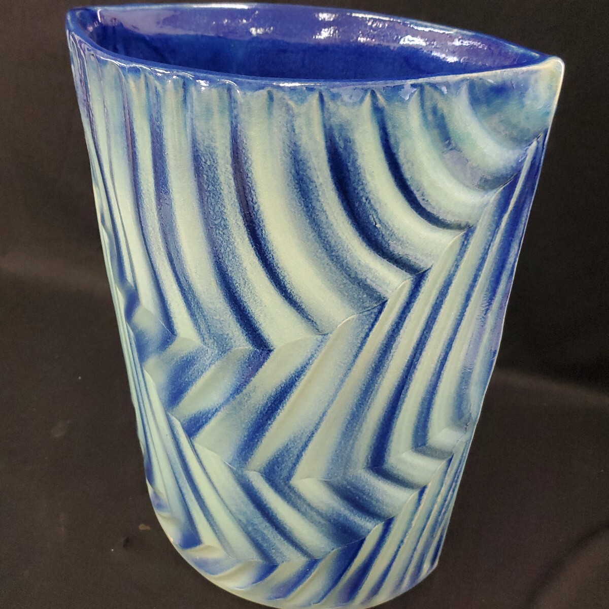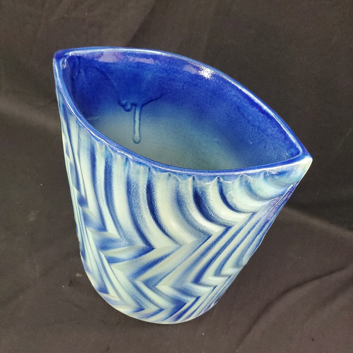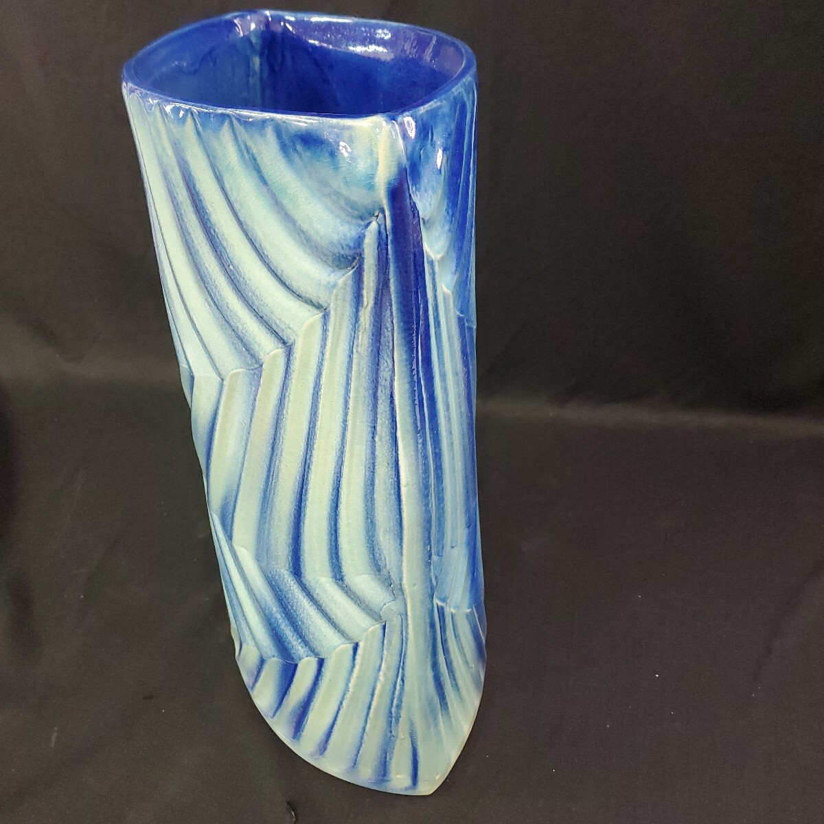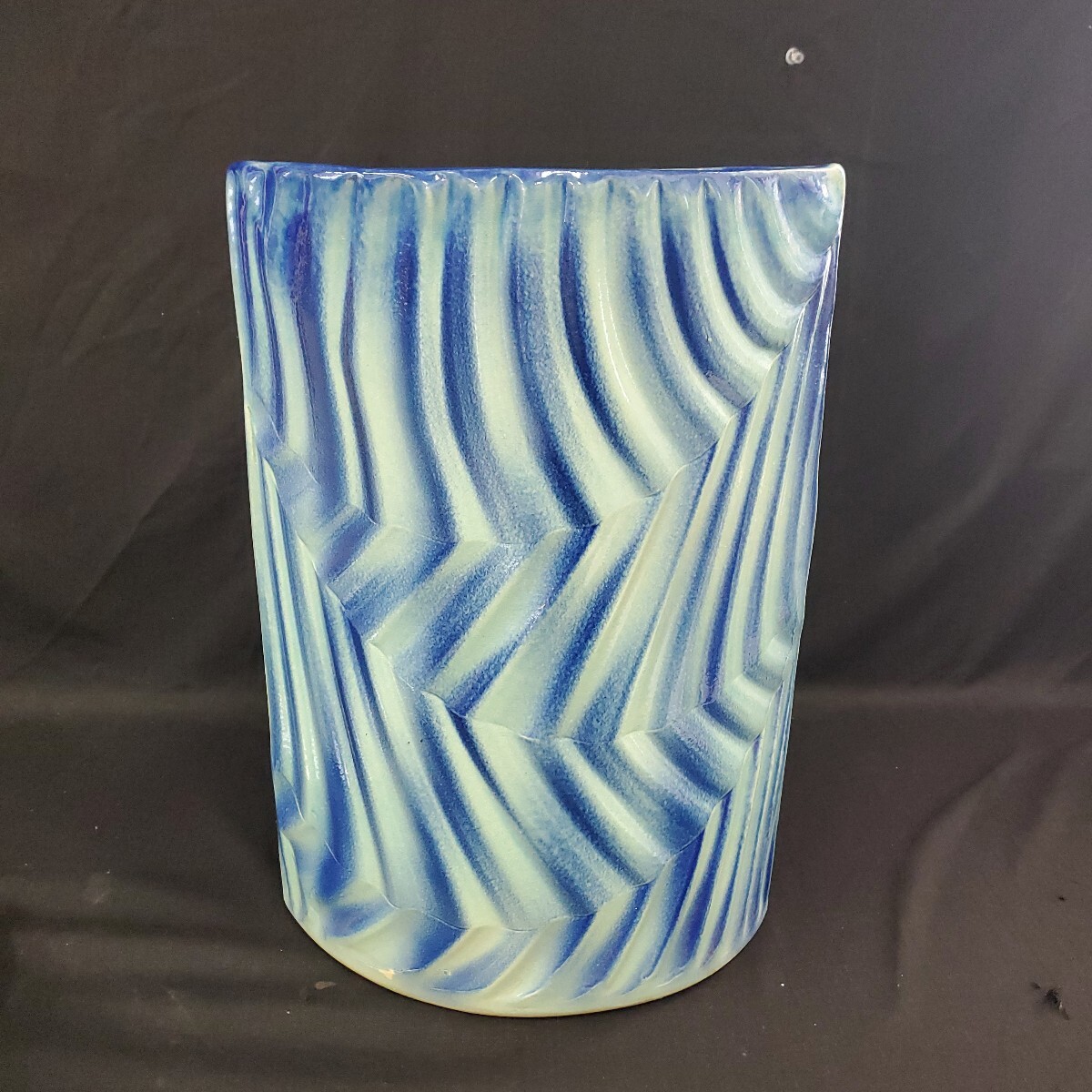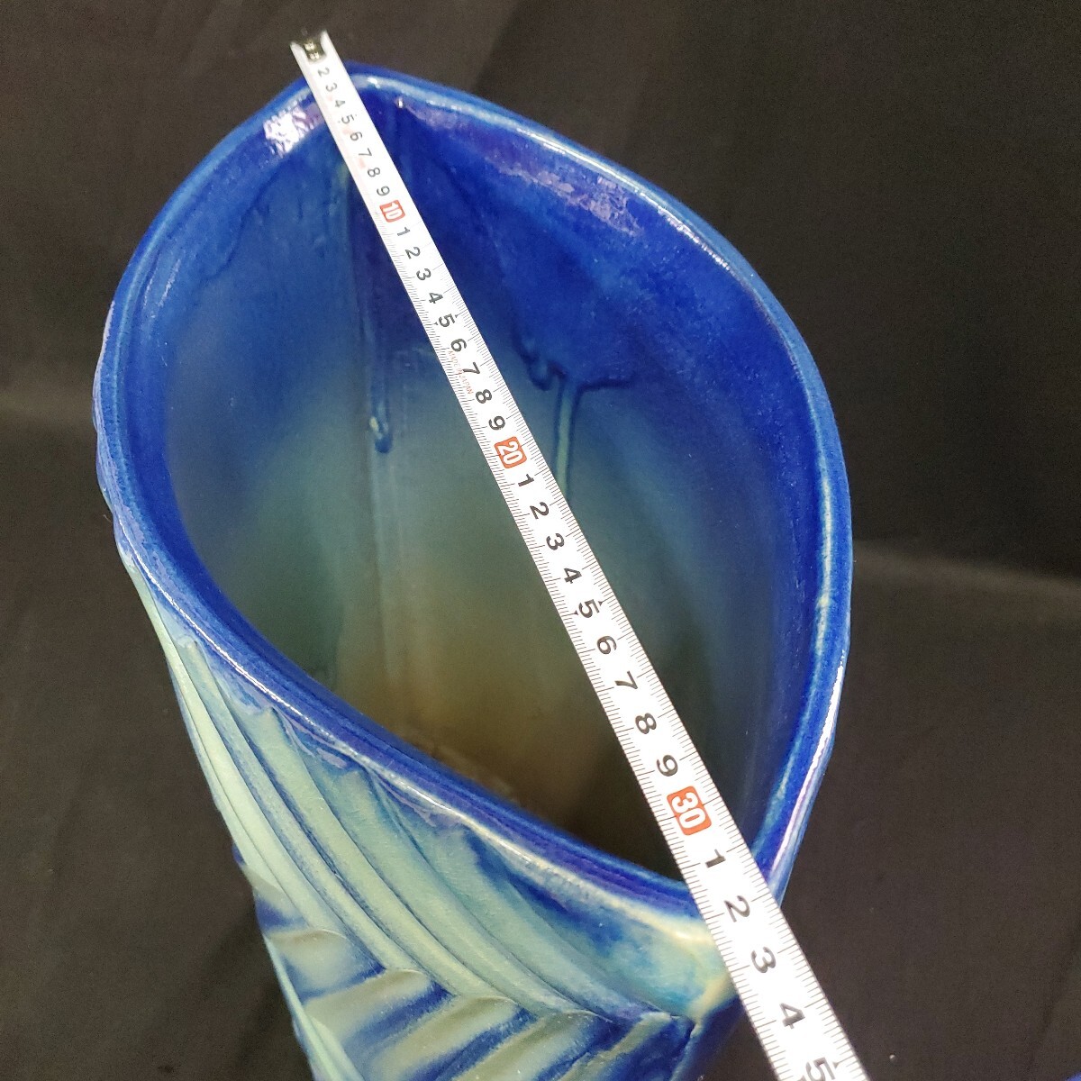 ★中古 傘立て 陶器製 インテリア 高さ約46cm 重さ約10kg 楕円形 アンブレラスタンド ブルー 275-91