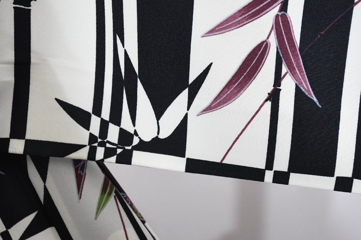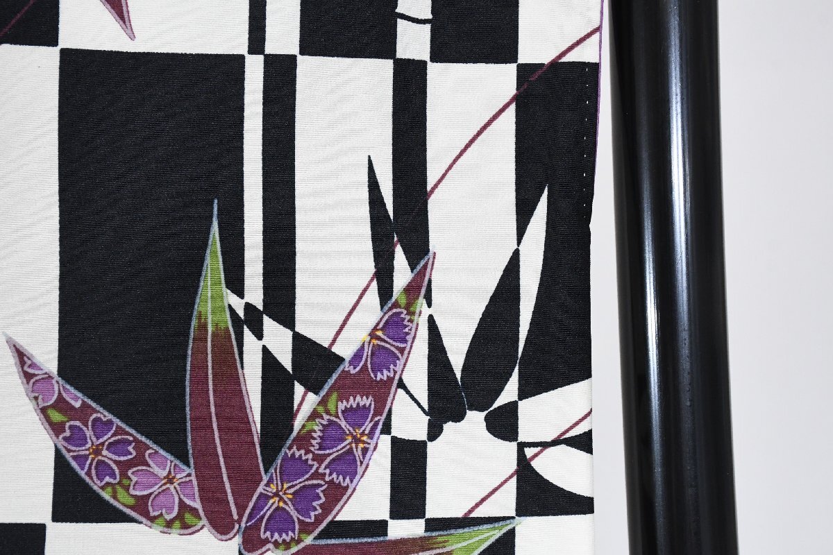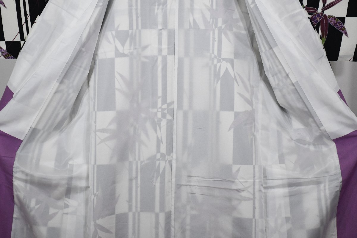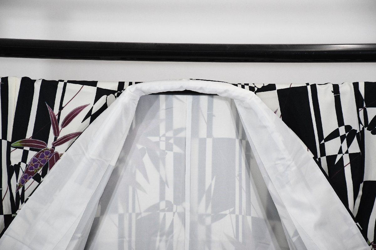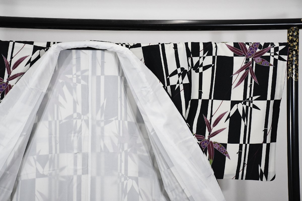 小紋 着物 袷 白黒 市松柄 竹 身丈166cm 裄丈69cm ★ kb-7403 桜庭呉服店