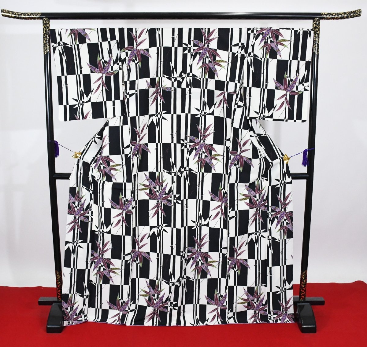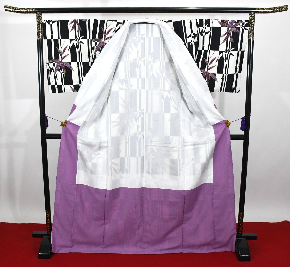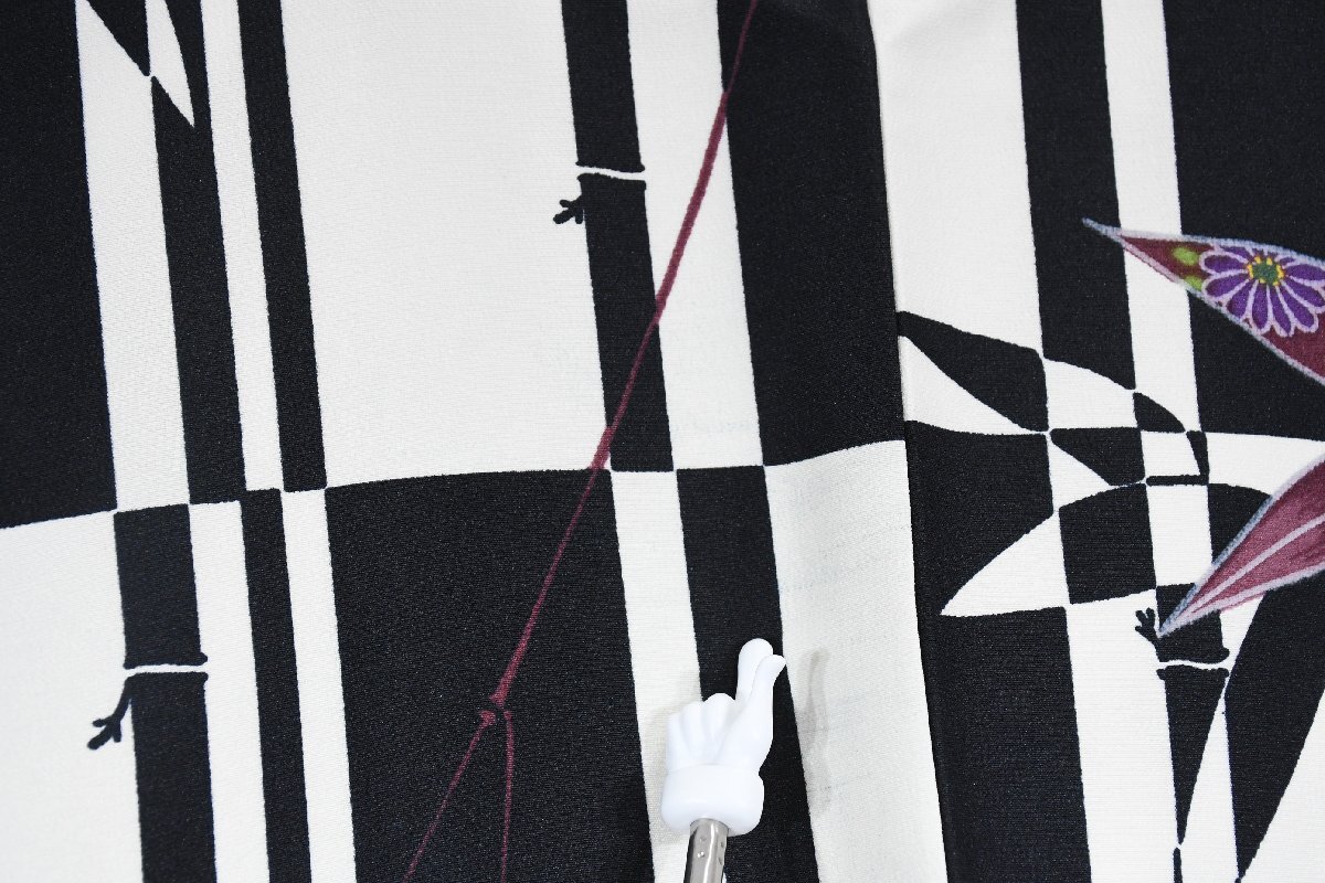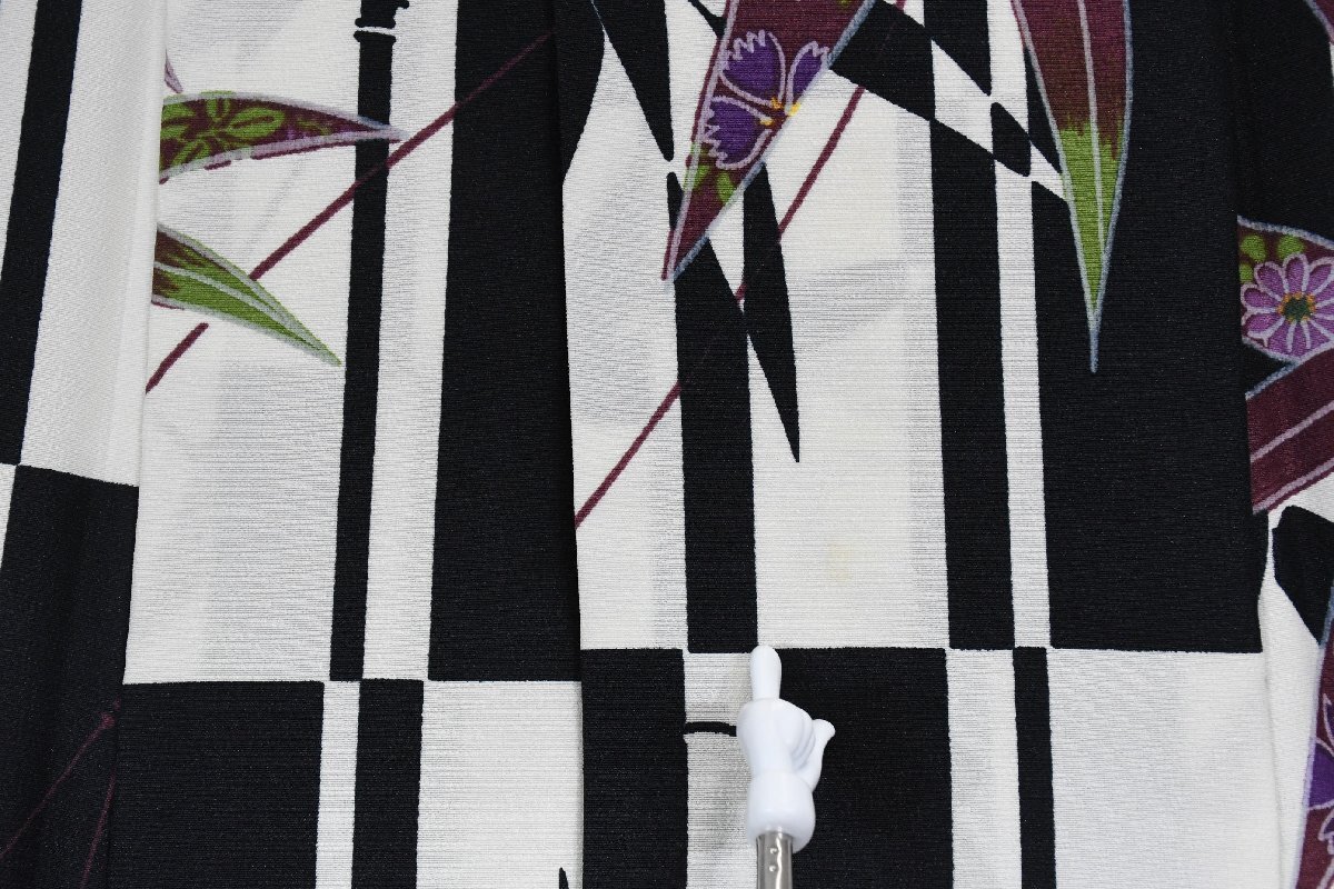 小紋 着物 袷 白黒 市松柄 竹 身丈166cm 裄丈69cm ★ kb-7403 桜庭呉服店