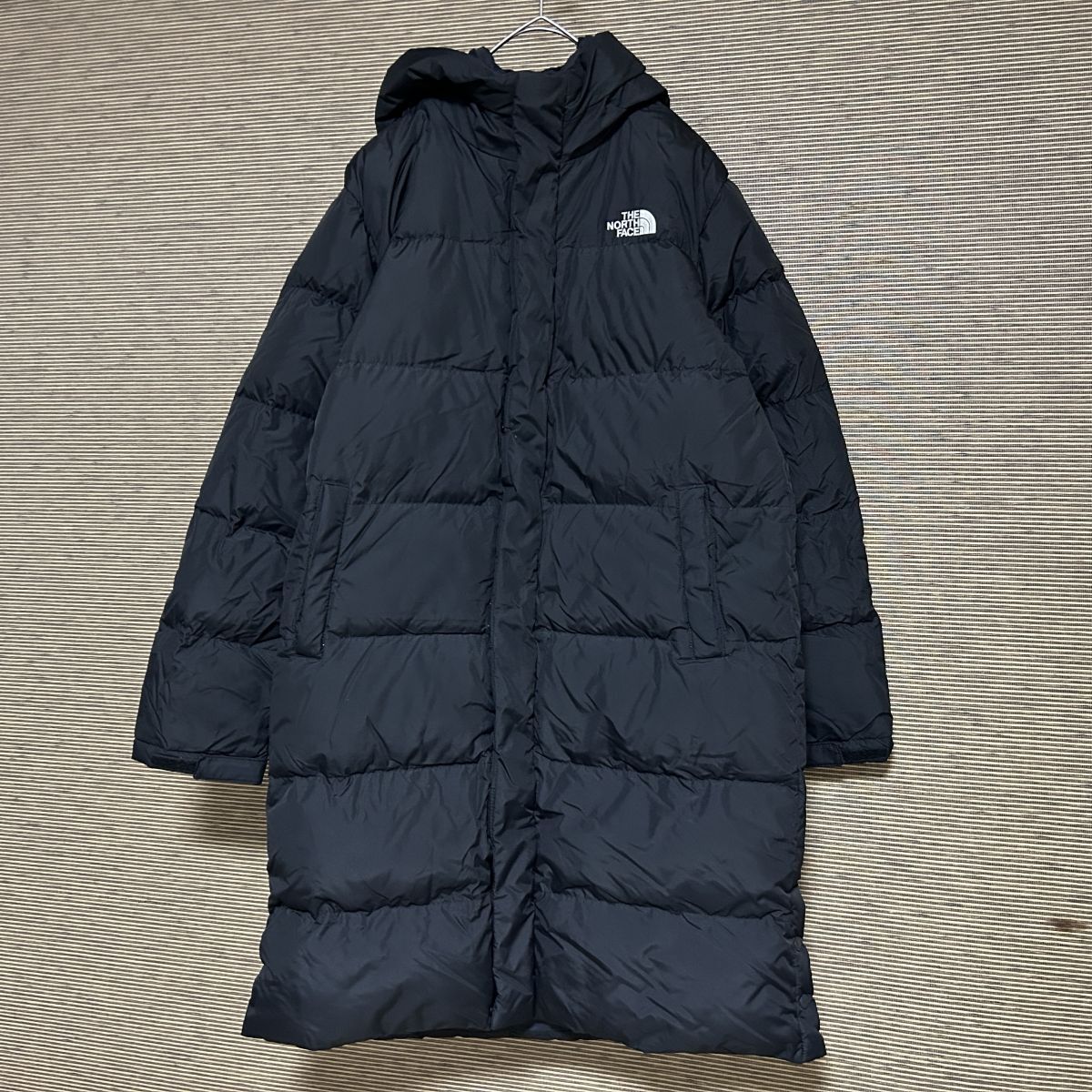 ノースフェイス ロングダウンコート ベンチコート ブラック子供160キッズF1 古着 入手困難 激レア 希少 人気ワンポイントレディース