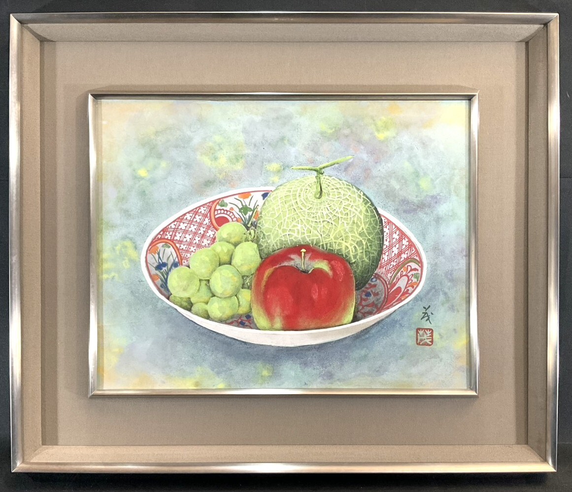真作■日本画■山口茂■『果実』■リアルに描かれた美しい逸品■額付絵画 1b