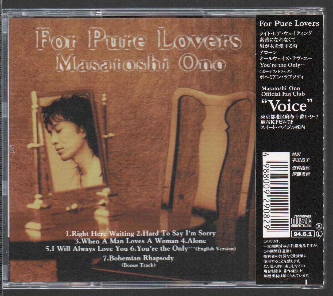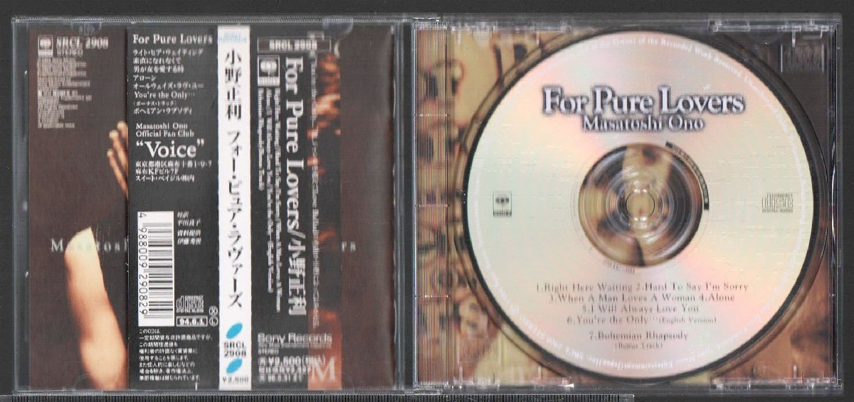 ■小野正利(ガルネリウス)■初カバー作品■「For Pure Lovers」■驚異のQUEEN[ボヘミアンラプソディ]■SRCL-2908■1994/6/21発売■美品■