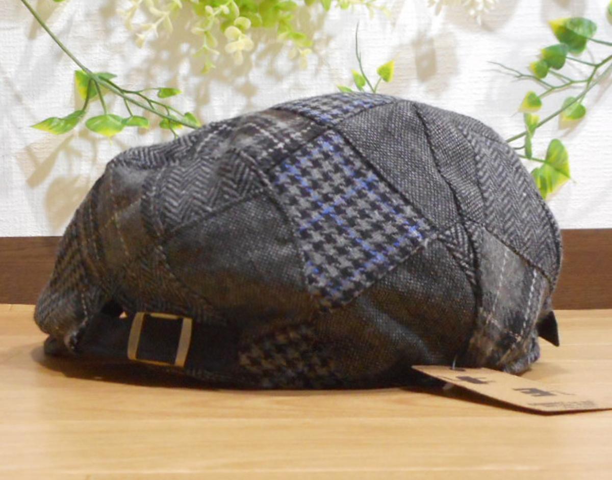◆フリーサイズ Crazy Patchwork パッチワーク ハンチング 帽子(グレー)