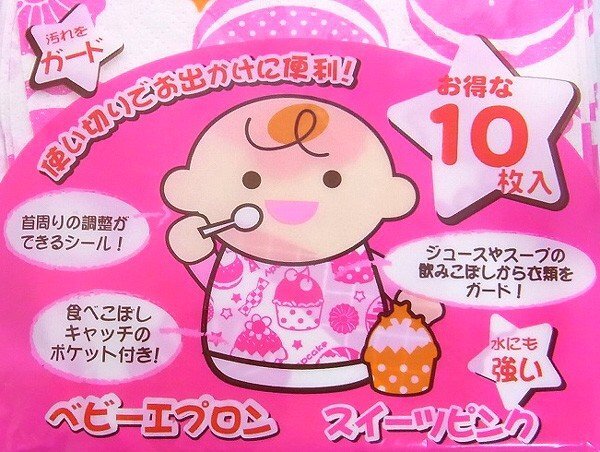 【vaps_2】ベビーエプロン スイーツピンク柄 10枚入り 使い捨て 使いきり エプロン よだれかけ 送込