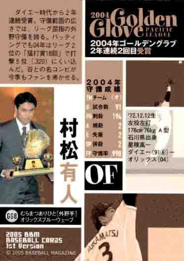 即決! 2005 BBM '04 Golden Glove #GG8 村松 有人 [OF] 挿入 カード