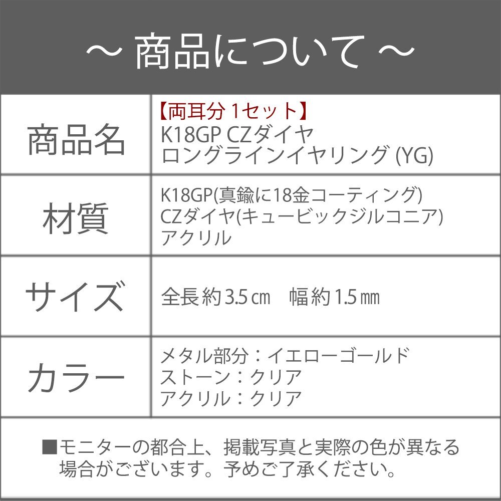 新品/イヤリング/K18GP/レディース/ロング/長い/イエローゴールド/18金/18kコーティング/ピアス見え/樹脂/金属アレルギー/ダイヤ/CZ