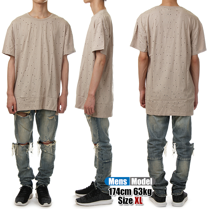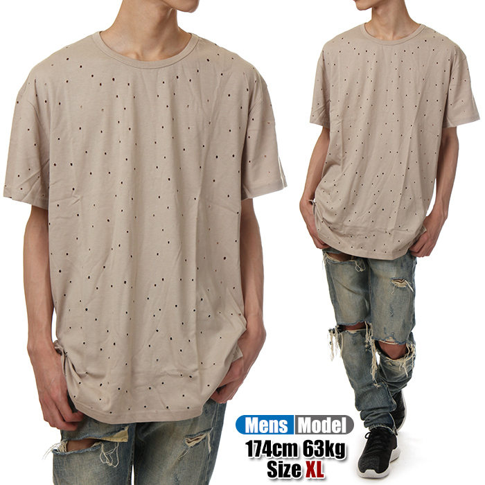 【新品】HENRY&WILLIAM ロング丈 半袖 Tシャツ XL ベージュ メンズ ヘンリー&ウィリアム 穴あき 無地 ブランド 大きいサイズ USAモデル