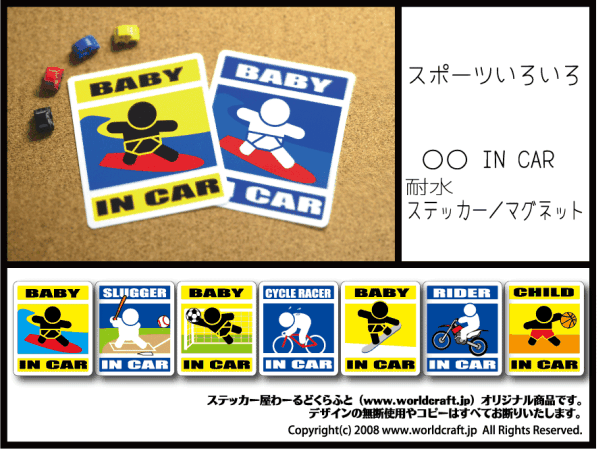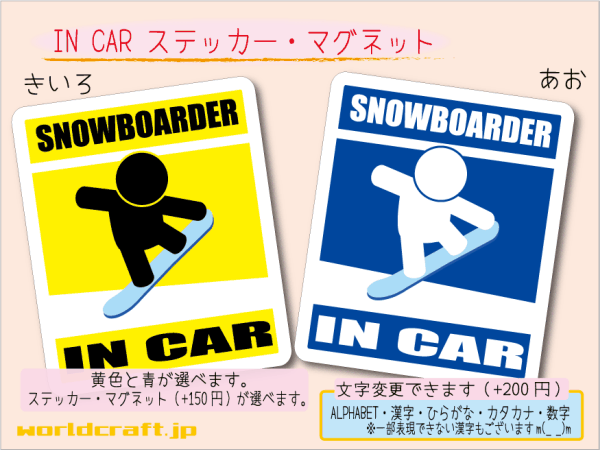 ■_ IN CARステッカースノーボード青B スノボ 1枚 色・マグネット選択可■車に乗ってます おもしろ 耐水シール☆_ot