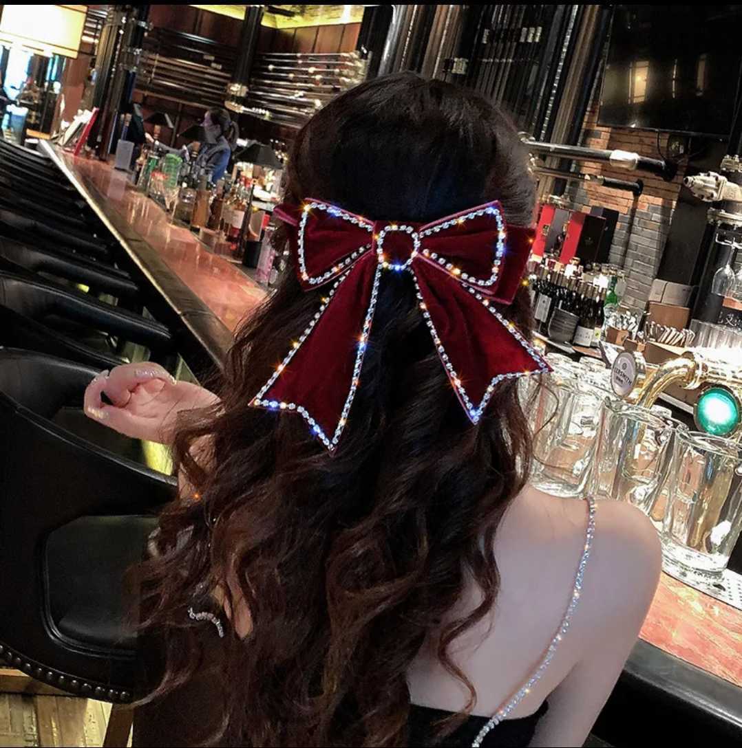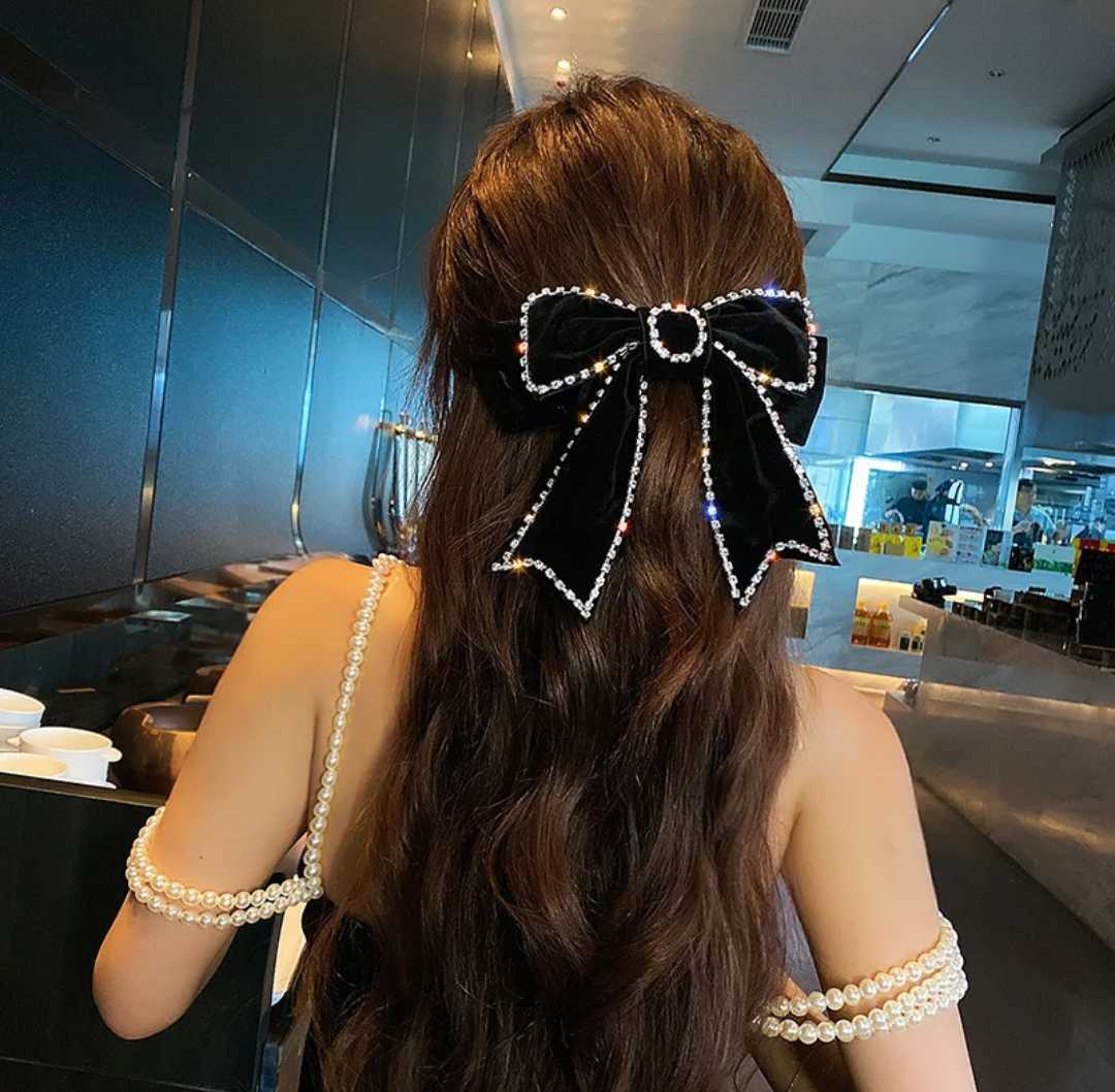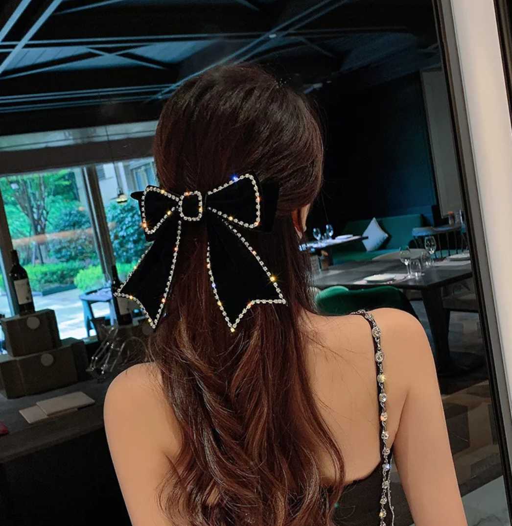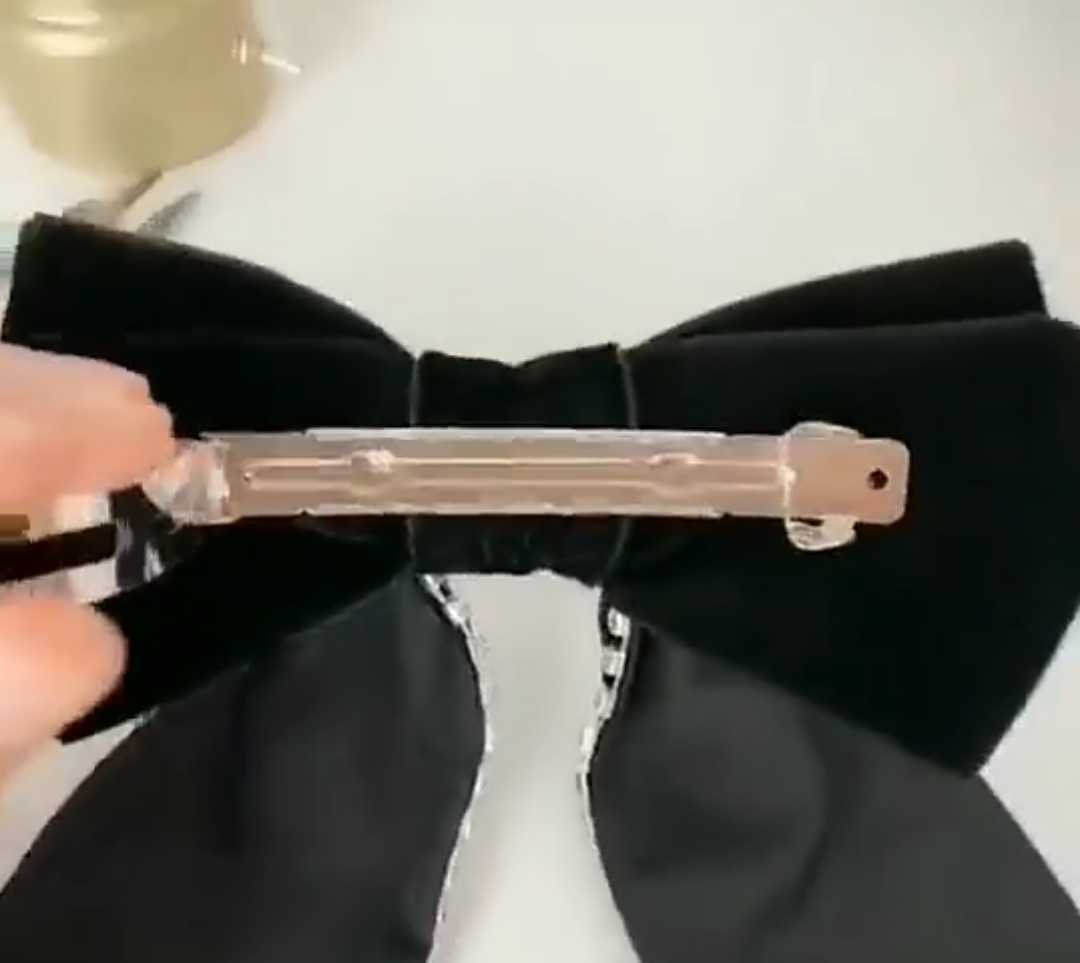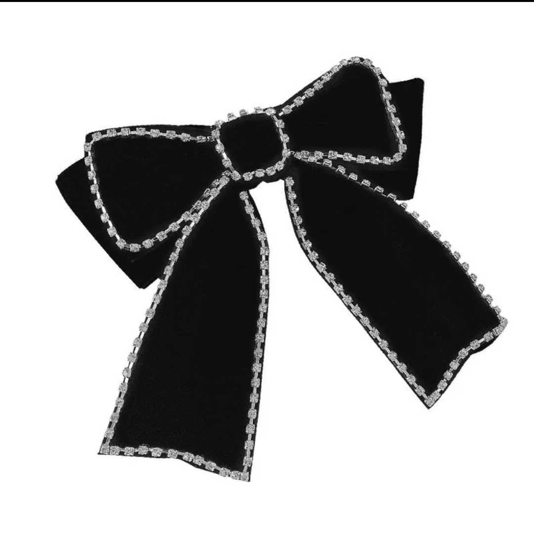 送料無料 エレガント リボンバレッタ 髪飾り ベルベット生地 カラーブラック パーティーなどに