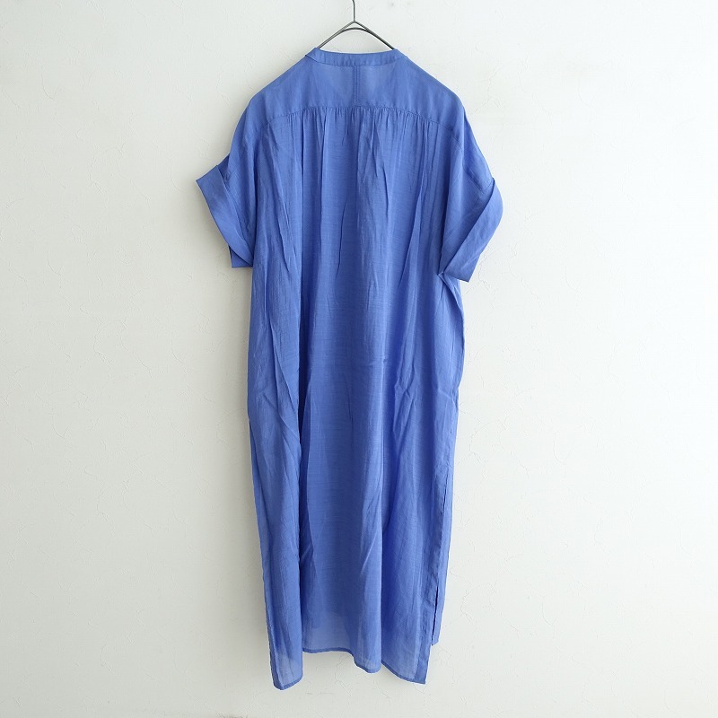 ユイティーム ニ huitieme nid *ピンタックギャザーバンドカラーチュニックシャツ*青ブルー半袖ワンピース(25-2507-469)【01H52】