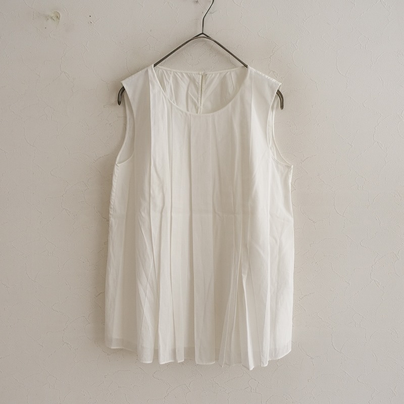 トゥモローランド TOMORROWLAND *フロントプリーツドッキングノースリブラウス*38ホワイトタンクトップ綿(2-2508-136)【92H52】