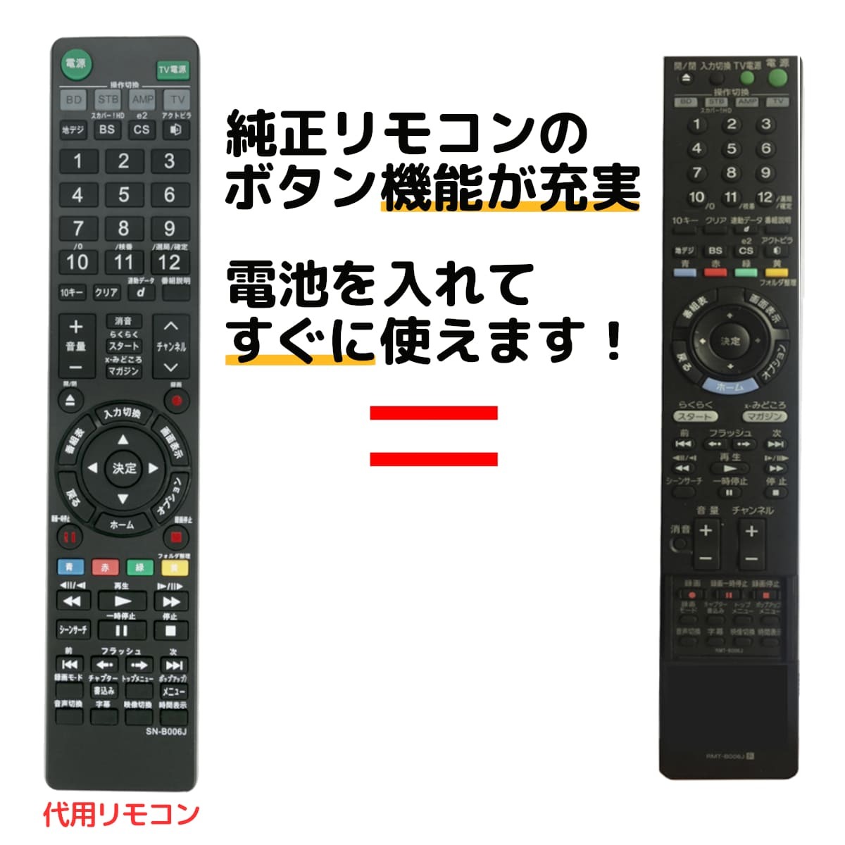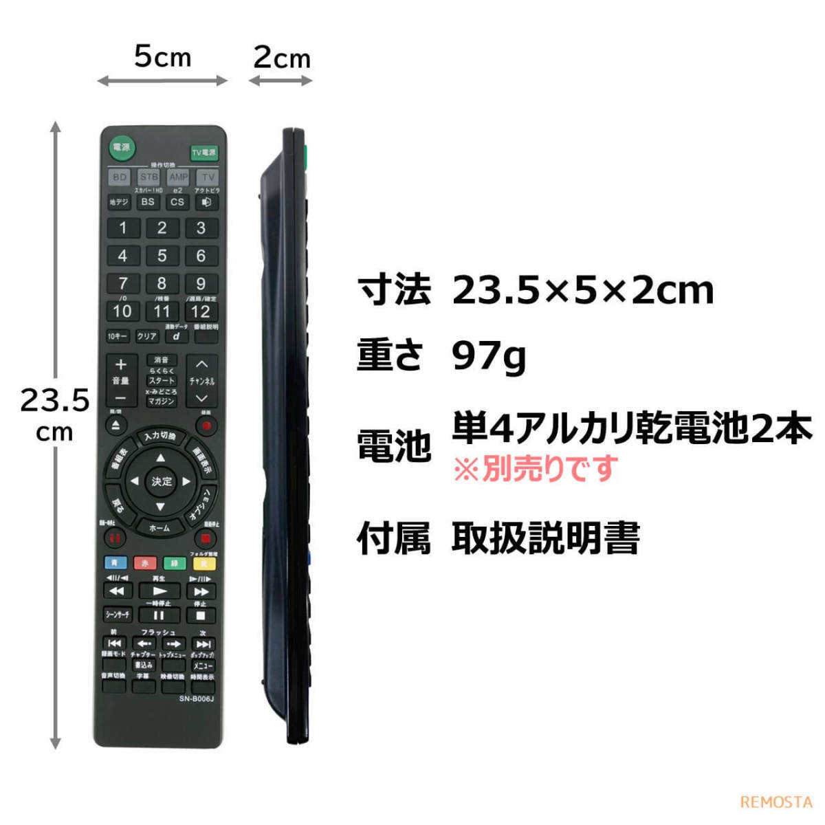 互換品 ソニー ブルーレイ リモコン RMT-B006J BDZ-RS15 BDZ-RX35 BDZ-RX55 BDZ-RX105 SONY レコーダー 代用リモコン REMOSTA