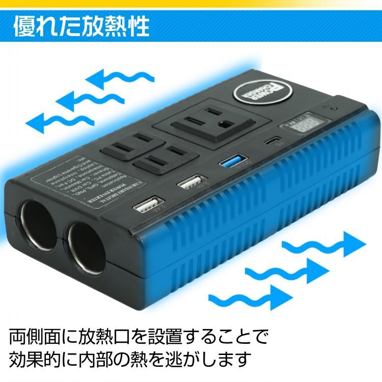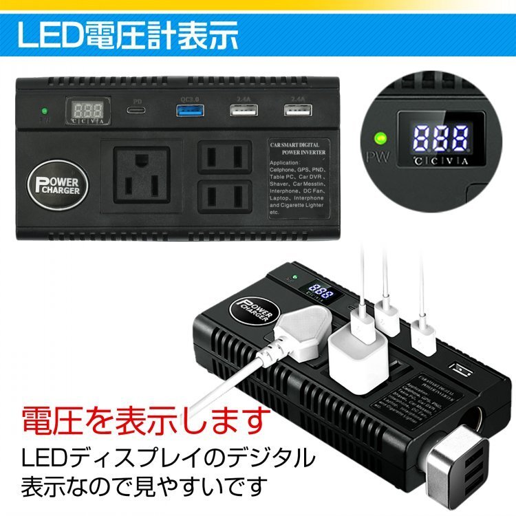 送料無料 車載 インバーター AC DC シガーソケット 12 24V コンセント USB 9ポート 配線不要 充電機 直流 交流 バッテリー 防災 旅行 ee188