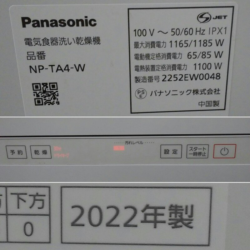Panasonic パナソニック 電気食器洗い乾燥機 NP-TA4 2022年 食洗機 NP-TA4-W ホワイト