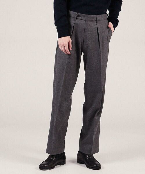 ◆◇TOMORROWLAND ストレッチサキソニー インプリーツワイドスラックス 17チャコールグレー サイズ46(M) Super100ウール (61-04-14-04401)