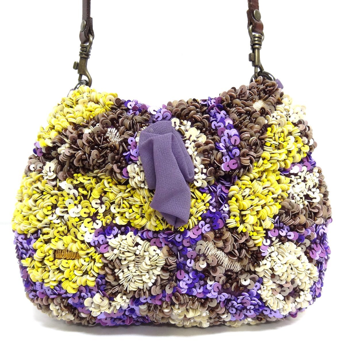 JAMIN PUECH ジャマン ピュエッシュ ショルダーバッグ パーティーバッグ スパンコール 刺繍 パープル H.P.FRANCE BIJOUX ☆