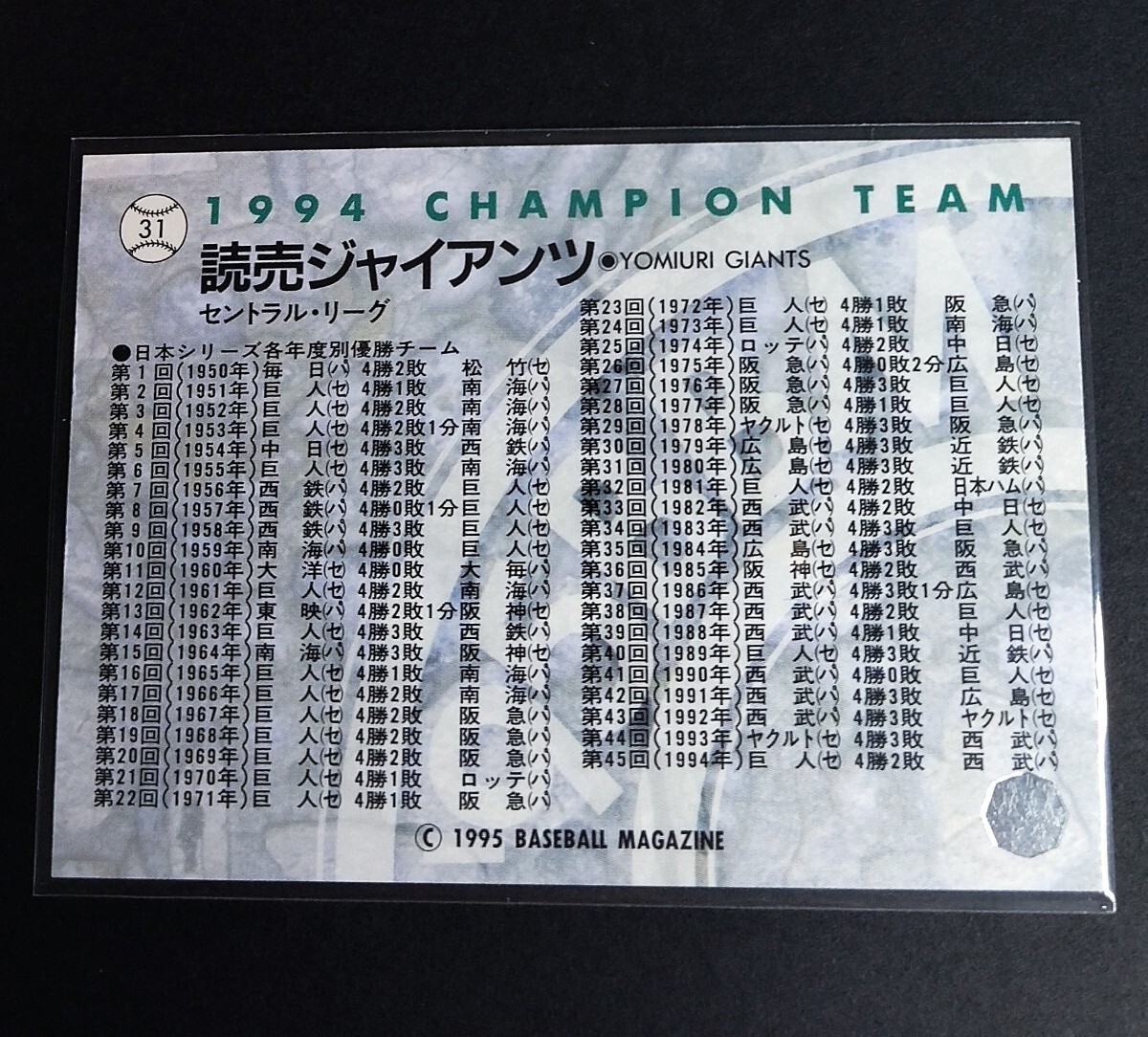1995年BBM 読売ジャイアンツ(巨人)チャンピオンチーム!No,31。