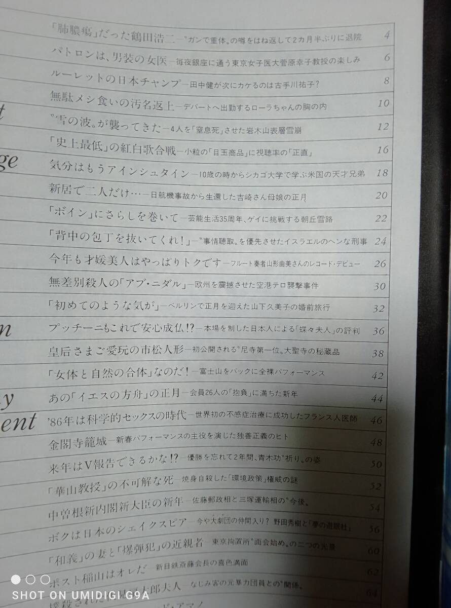 FOCUS フォーカス 1986年1月17日号 NO.2☆日航機墜落事故・生存者/田中健&古手川祐子/紅白歌合戦/朝丘雪路/山形由美/布袋寅泰&布袋寅泰