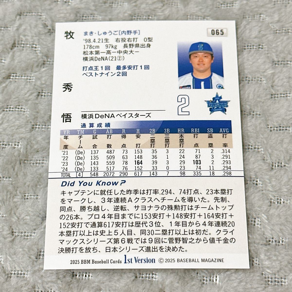 【牧秀吾】レギュラーカード キラ 2025BBMベースボールカード1stバージョン